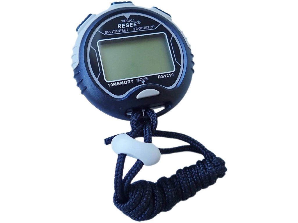 Stopky měří čas s přesností na 1/100 sekundy a mají pamět na 10 údajů měření.
