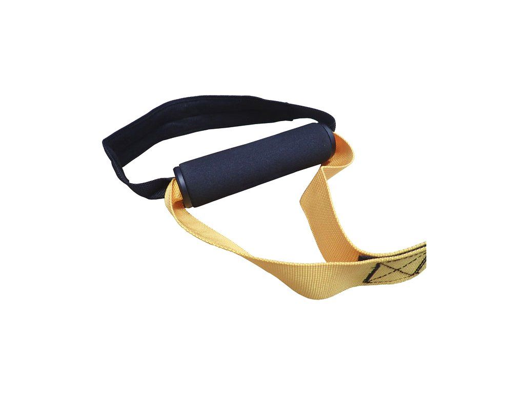 Pozor, při cvičení se snažte vyhnout posunování úchopů z jedné strany na druhou, hrozí poškození popruhu třením o závěs popruhů.