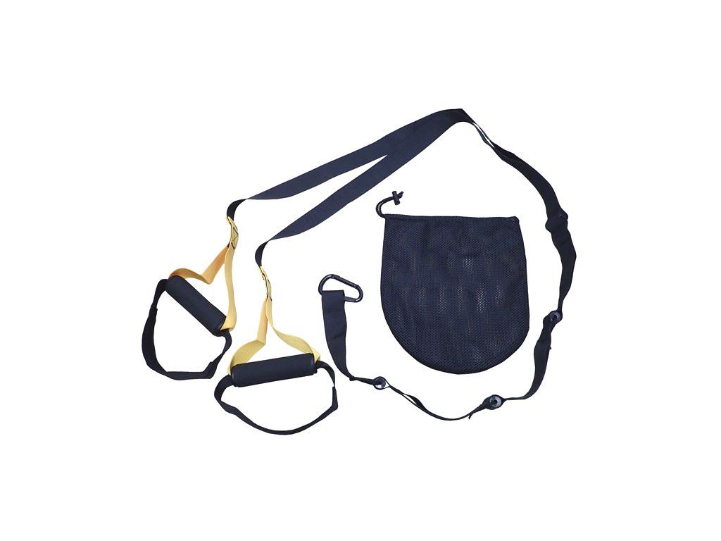 Závěsné posilovací popruhy slouží k posilování rukou, nohou, hrudních a břišních svalů, zádových svalů a na protahování celého těla. Systém se skládá z popruhů (s možností jednoduchého nastavení 4 různých délek pomocí spon), které lze snadno uchytit na strom či jiný opěrný bod, případně provizorně do dveří - pomocí karabiny ukotvené buď přímo ve dveřích nebo v prvním oku popruhu, aby upnutí bylo zajištěno zdvojeným popruhem.