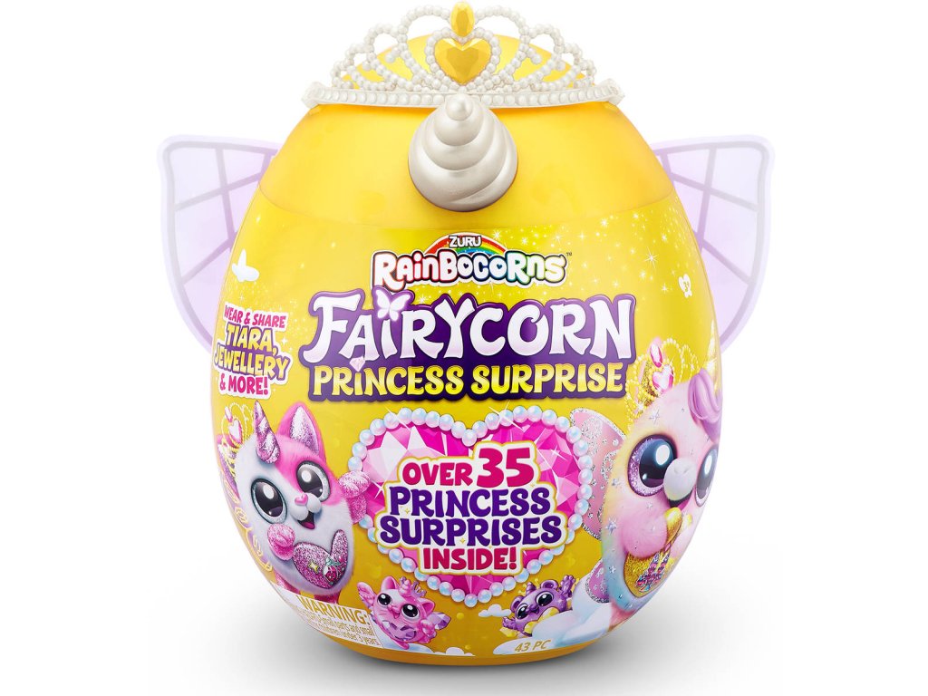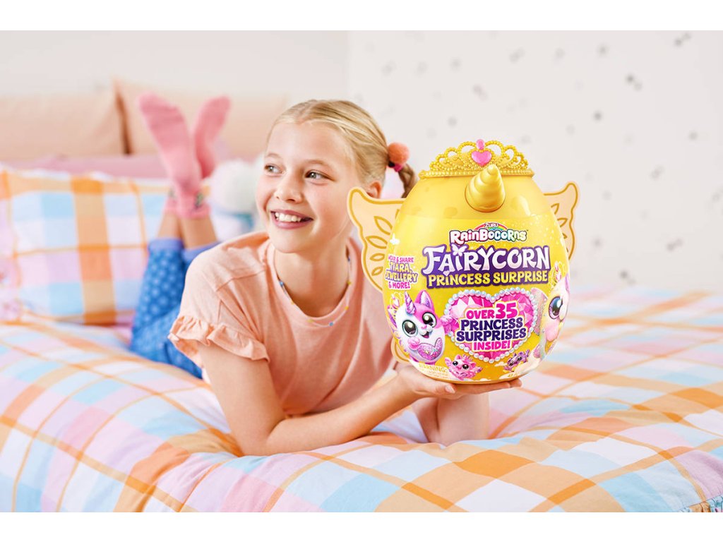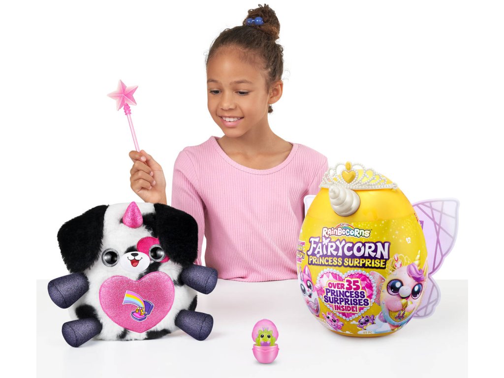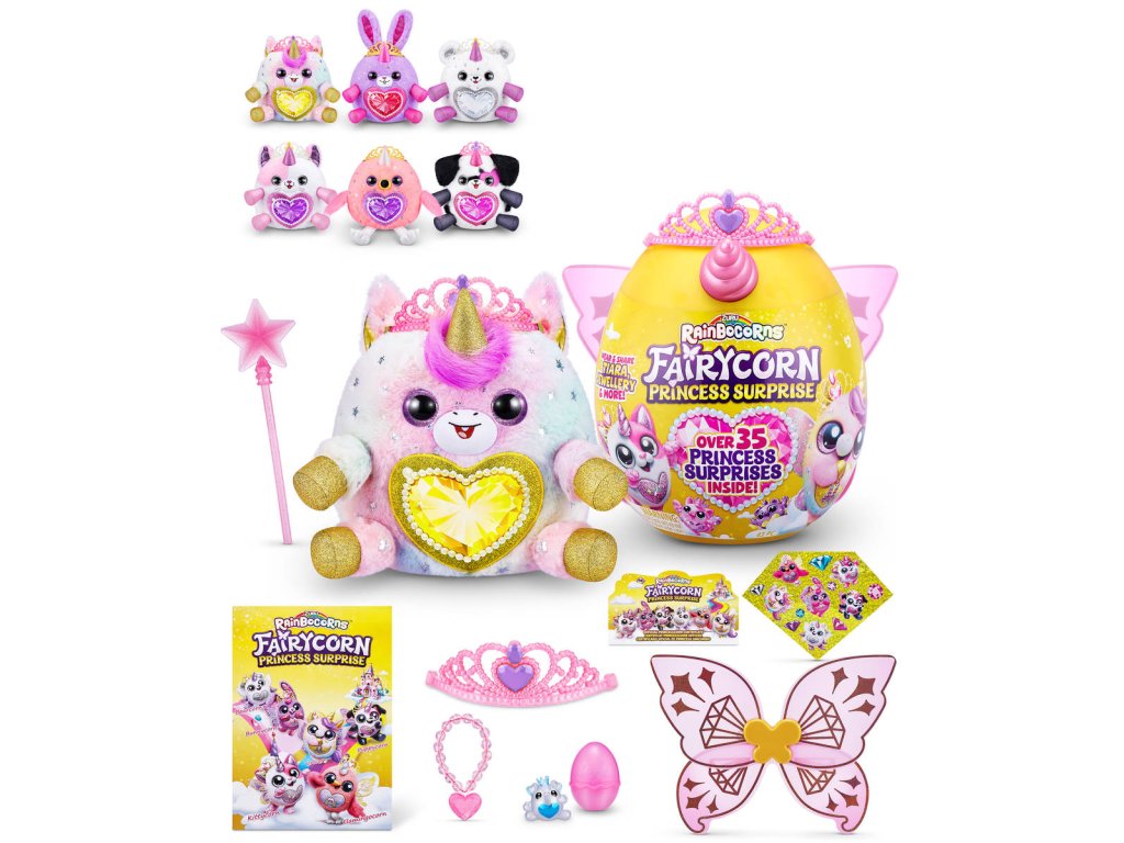 Poznejte královskou rodinu Rainbocornů plného kouzla a vznešenosti! Uvnitř tohoto pohádkového vajíčka se ukrývá více než 35 překvapení, která čekají, až je odhalíte. Při rozbalování se můžete těšit na korunku pro princezny a magickou hůlku, která vám otevře brány magického světa. Proměňte se společně se svým věrným Rainbocornem v pohádkové princezny! Nezapomeňte nasadit křídla, která vám dodají lehkost víly a budete tak dokonale ladit s vaším plyšovým nejlepším přítelem. V kolekci najdete celkem 6 okouzlujících plyšáků! Každý Rainbocorns má kouzelné srdce na hrudi, které můžete odloupnout a odhalit tak, co miluje. Připravte se na nevšední dobrodružství v říši Rainbocorns, kde se setkáte s kouzelným světem naplněným překvapením a pohádkovým leskem!