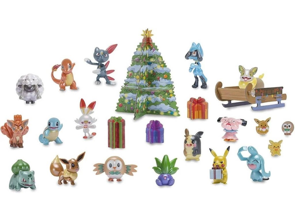 Pokémon adventní kalendář obsahuje 16 figurek + další příslušenství. Každý den přinese nové překvapení, protože když otevřete dvířka s dalším číslem, najdete za nimi figurku Pokémona (celkem je tam až 16 různých hrdinů, mezi nimi Pikachu, Squirtle, Bulbasaur a Eevee) nebo předmět spojený s Vánocemi (celkem 8).