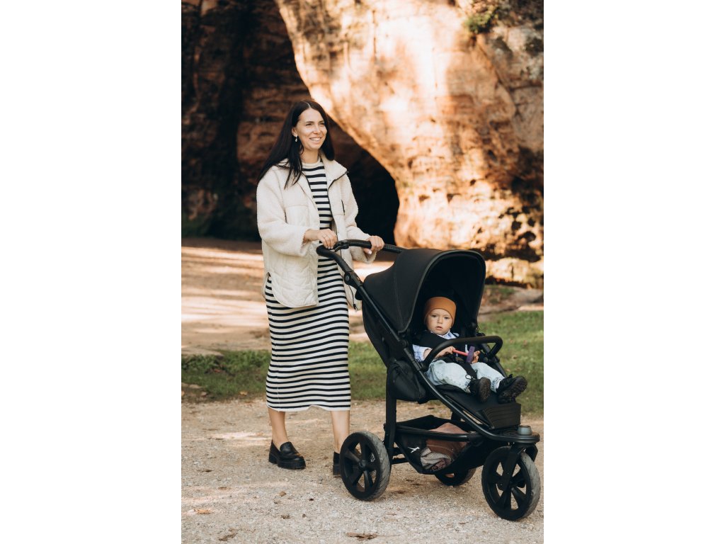 - Spolehlivost v každém terénu: TFK kočárky jsou navrženy tak, aby zvládly i náročné podmínky, jako je lesní cesta, štěrk nebo sníh.
