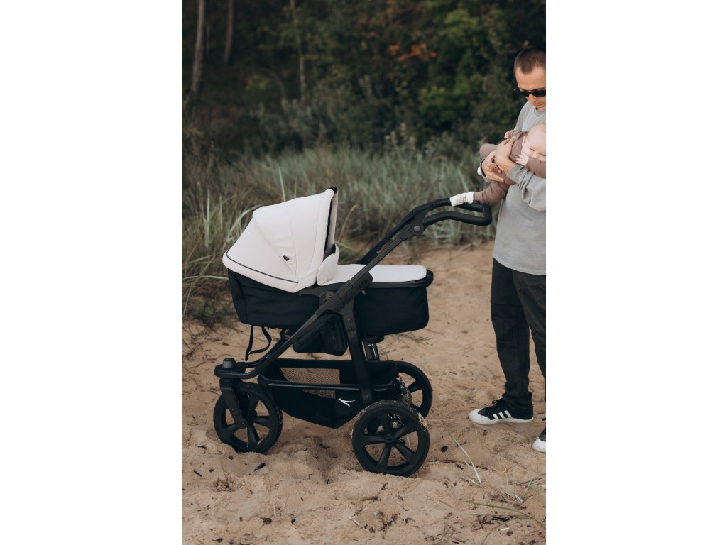 Barevná varianta Sand je ideální volbou pro rodiče, kteří hledají jemný přírodní vzhled. Tento model je mezi našimi zákaznicemi nejoblíbenější pro svou "nezničitelnost". Pokud váháte nad koly: do lesa a na výlety berte vzduchová, pokud se pohybujete v místech, kde hrozí defekty, volte vzduchovou komoru. Kvalita konstrukce je v obou případech špičková a kočárek si skvěle drží cenu i při následném prodeji.