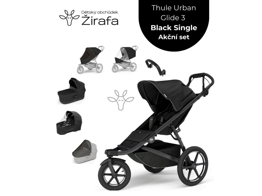 Akční set Thule Urban Glide 3 Magnetic Buckle Black + Korbička + Madlo + 2x Pláštěnka + 2x Moskytiéra 2025