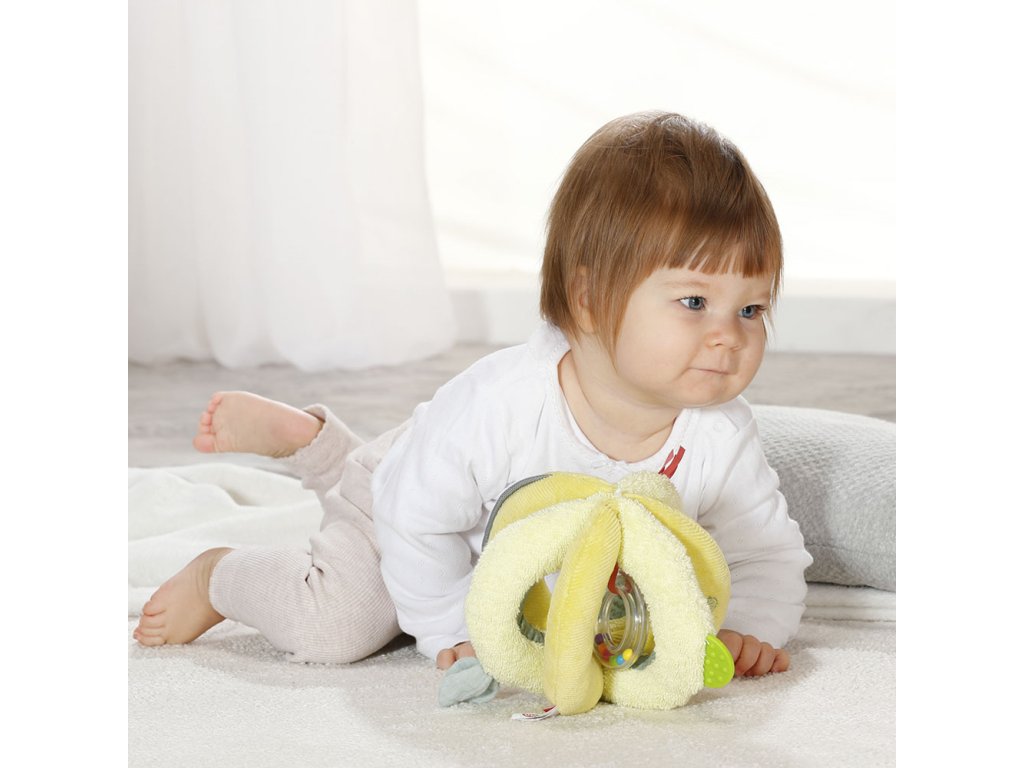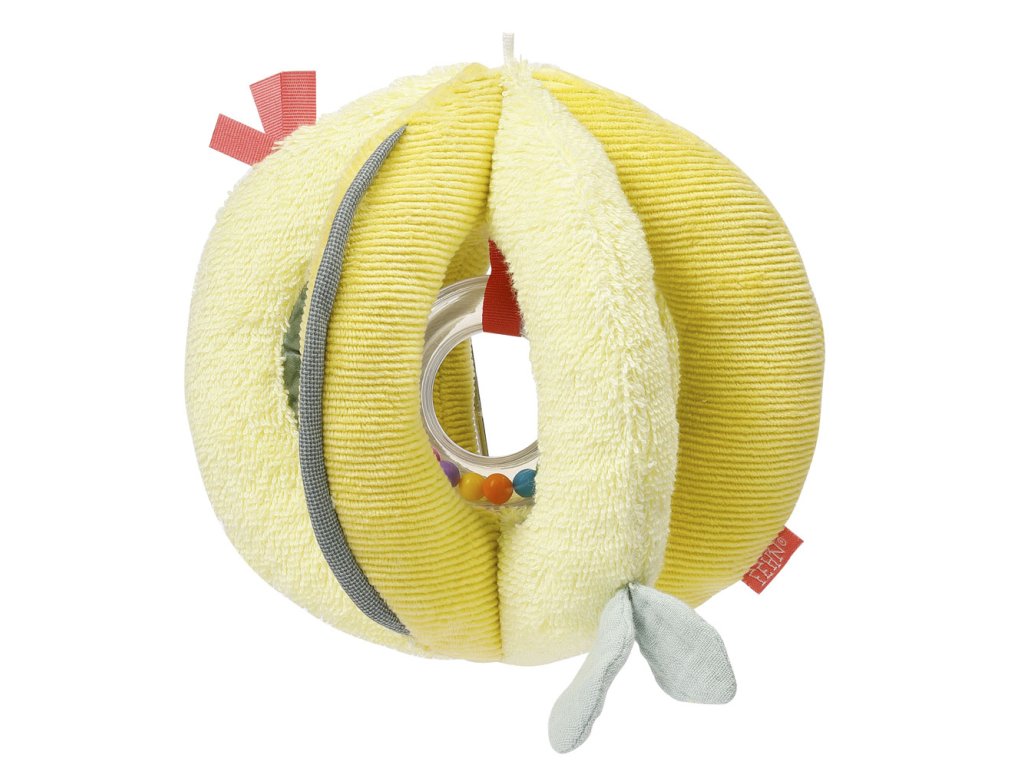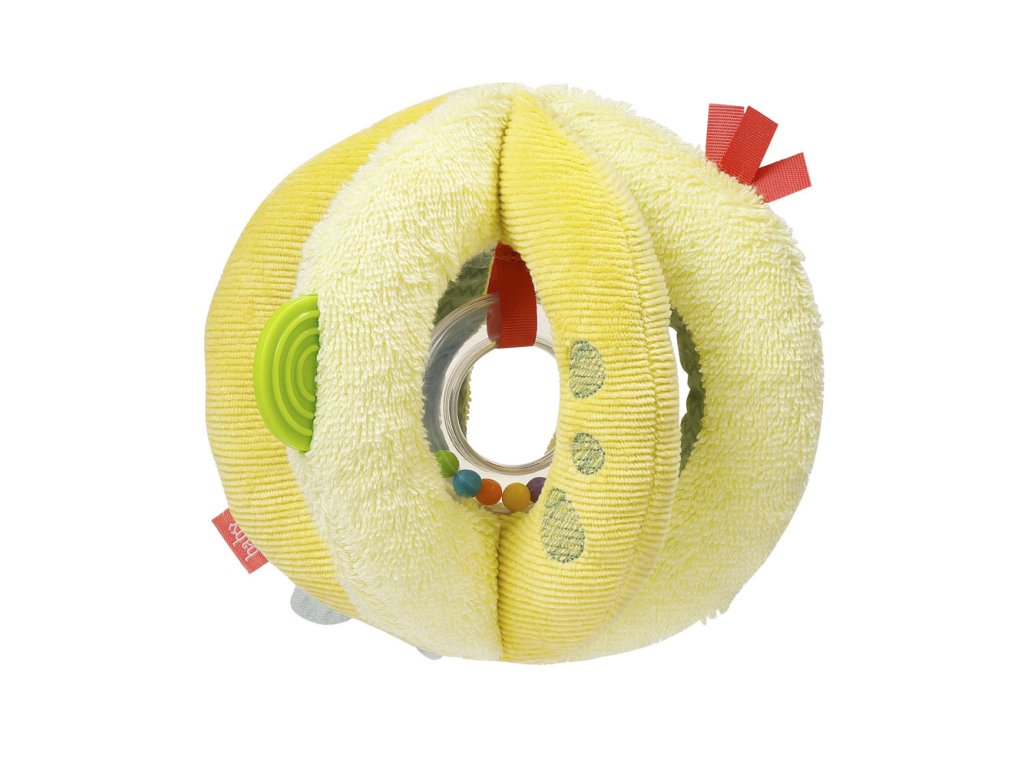 Měkký míč je vyroben z kvalitního manšestru a froté, vyplněn je plyšem. Podporuje přirozenou zvědavost dětí a přímo vybízí ke koulení, házení a hraní. Balónek je vybaven chrastítkem, šustícím papírem a pískátkem. Při hře podporuje zdravý vývoj motoriky, koordinace, smyslů a fantazie. Díky praktické velikosti je možné míč snadno přenášet a zmístí se do kočárku, autosedačky i dětské postýlky.