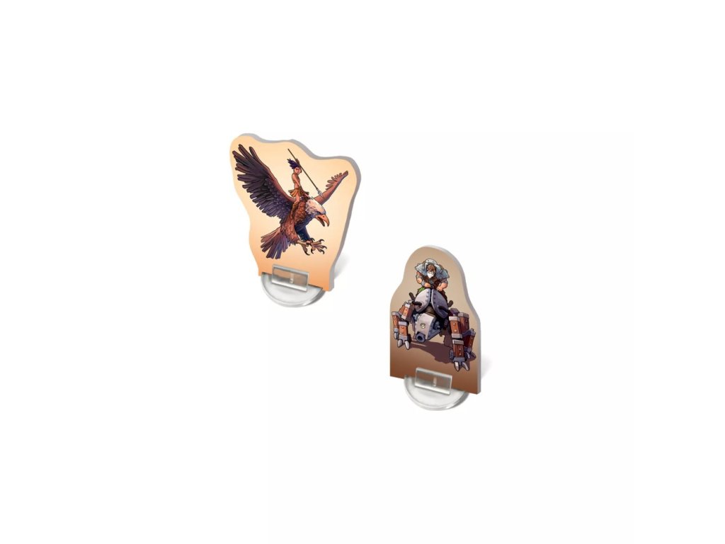 2 kartonové figurky hrdinů se stojánky