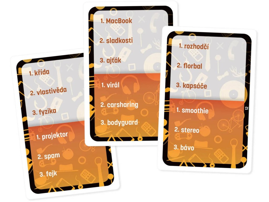 Hra obsahuje: herní plán, 400 karet obsahujících 2 400 slov, přesýpací hodiny, 2 figurky, pravidla hry
