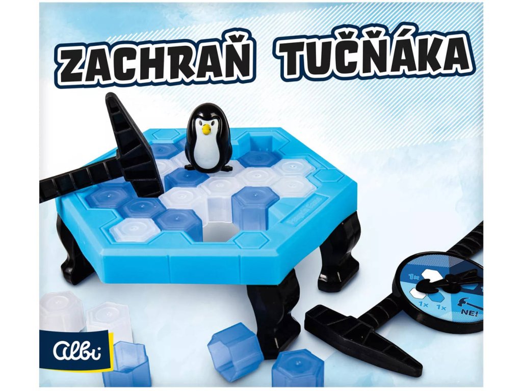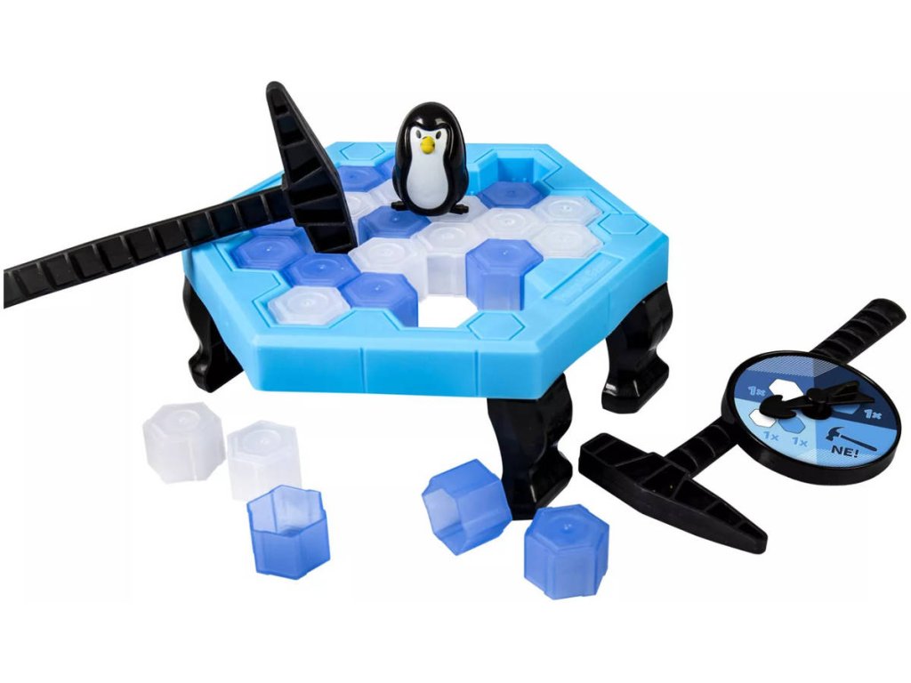 Poutavá rodinná hra plná zábavy a napětí! Klepejte ledové kostky, ale pozor – nesmíte nechat tučňáka spadnout! Kdo má pevnou ruku a nejlepší strategii, vyhrává. Zatočte kolečkem a poté z ledové plochy vyklepněte odpovídající ledové kostky podle toho, kam ukazuje šipka. Ten, komu tučňák spadne prohrává a hra končí! Jednoduchá pravidla, svižné hraní a spousta zábavy pro malé i velké hráče.