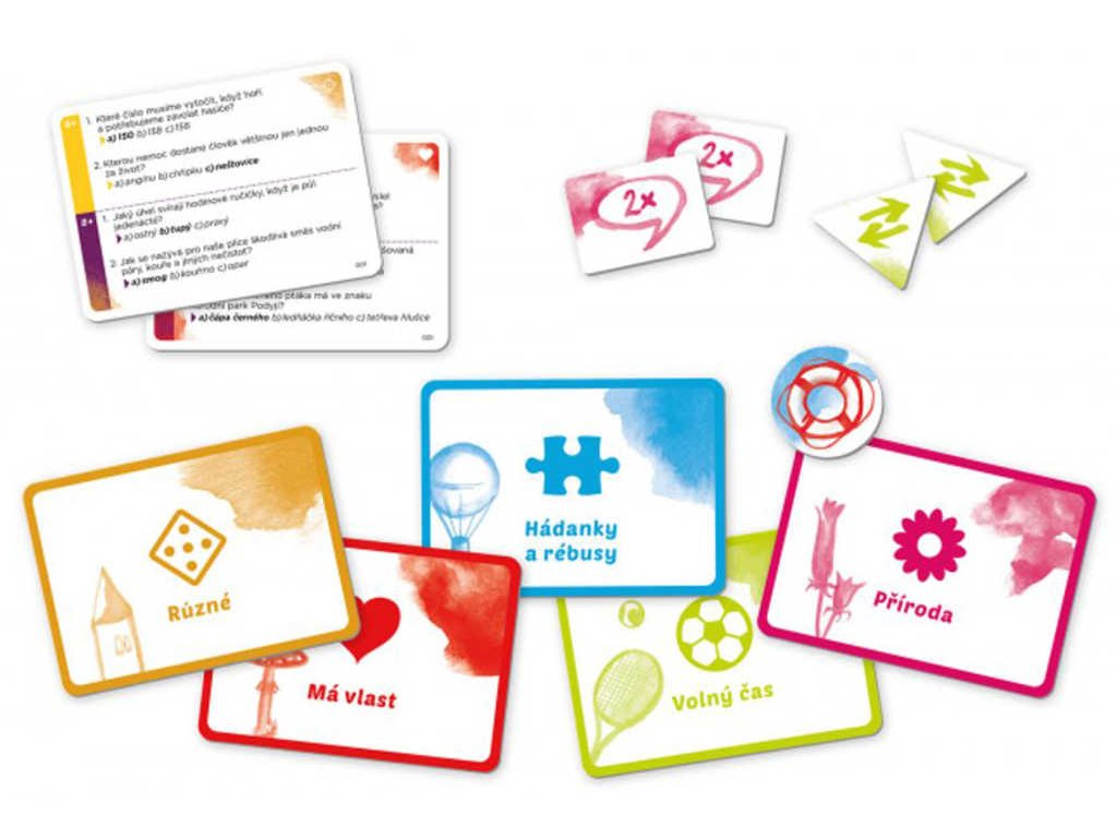 hře najdete 2000 otázek rozdělených do pěti kategorií: Má vlast, Příroda, Volný čas, Různé, Hádanky a rébusy. Otázky mají dvě úrovně obtížnosti rozdělené dle věku hráčů, mohou si tedy společně