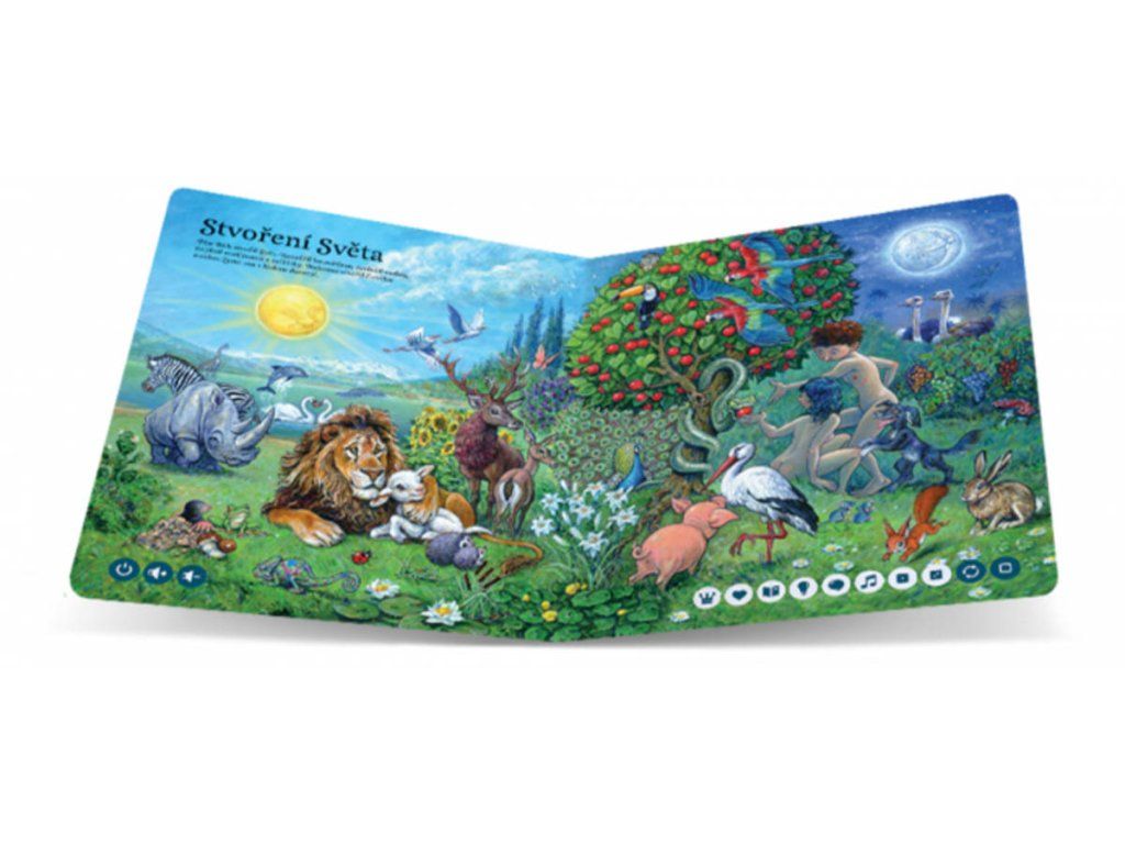Znáte nejčtenější knihu na světě, která je nazývána Knihou knih? Je to Bible a byla přeložena do všech jazyků. Naše mluvicí kniha s názvem Biblické příběhy vám bude vyprávět to nejzajímavější ze Starého a Nového zákona. Zjistíte, co říkají jednotlivé biblické postavy, poslechnete si dětské modlitbičky i hezké písničky, potěší vás krásné barevné ilustrace a v zábavných kvízech si ověříte, co jste si z knížky zapamatovali. Kniha obsahuje téměř 1 500 zvukových stop.