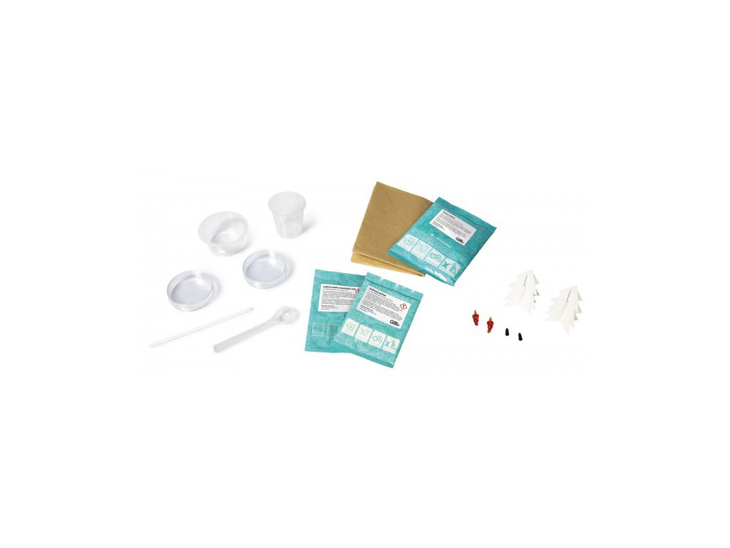 Balení obsahuje: 1 sáček sněhového prášku, 1 kus nepromokavého papíru, 2 kusy sněhulákova nosu, 2 kusy sněhulákových oček, 1 sáček s ledovými kostkami absorbujícími vodu, 1 sáček s mrazicím práškem, 1 odměrku, 1 kelímek, 1 lžičku, 1 míchátko, 2 Petriho misky, 4 části na vánoční stromeček