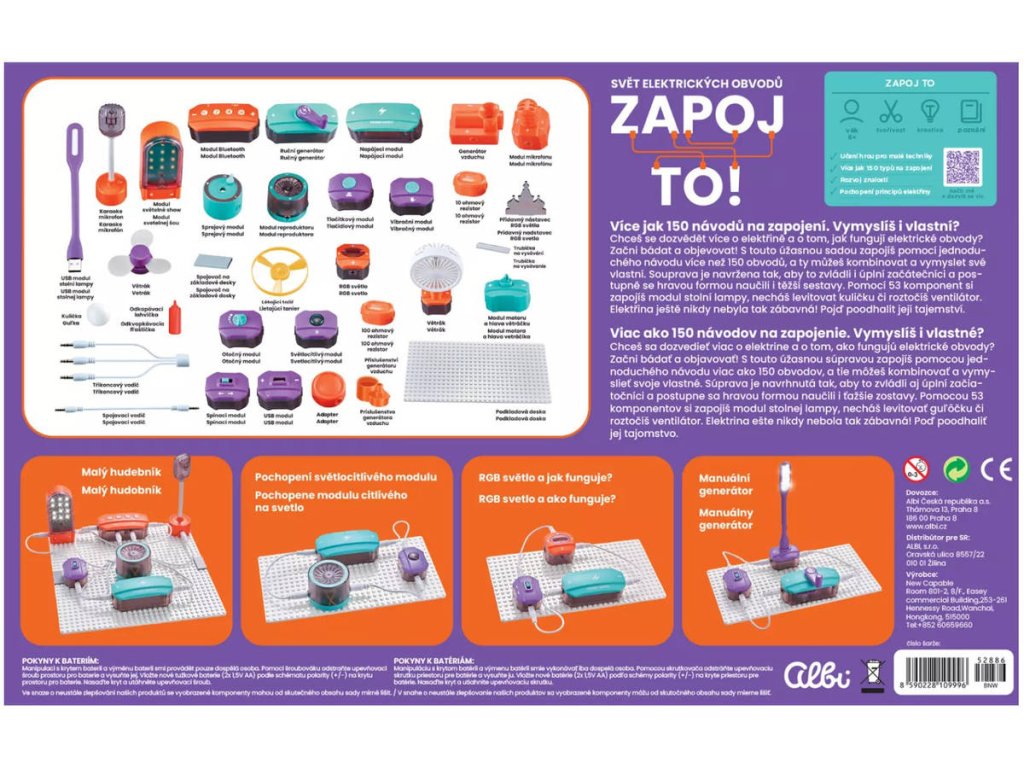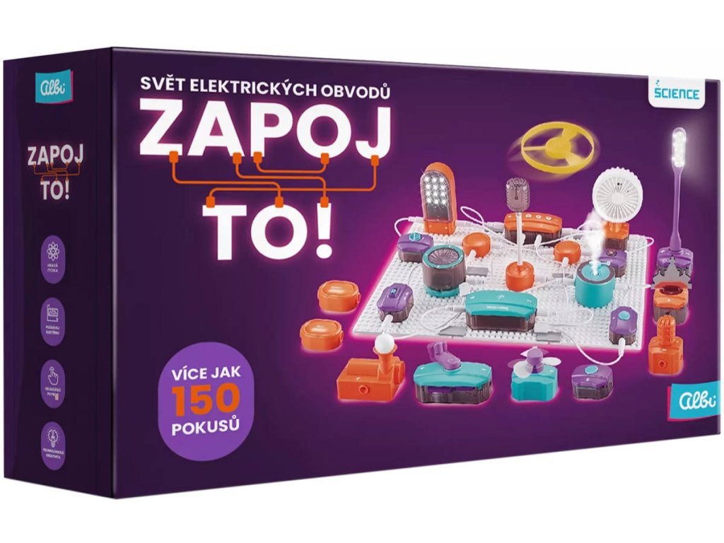 Objevte kouzlo elektřiny hravou a bezpečnou formou! S kreativní vzdělávací sadou Zapoj to! Svět elektrických obvodů děti od 8 let snadno proniknou do tajů elektrických obvodů a vyzkouší si více než 150 fascinujících projektů – od rozsvícení LED diody přes bzučák až po levitující kuličku či vodní sprej. Tato sada z edice Albi Science obsahuje 53 chytrých komponentů, které se jednoduše spojují bez pájení, takže děti mohou samostatně experimentovat a objevovat principy elektřiny zábavnou formou. Každý projekt navazuje na předchozí a postupně zvyšuje obtížnost, takže se děti učí přirozeně a s chutí.