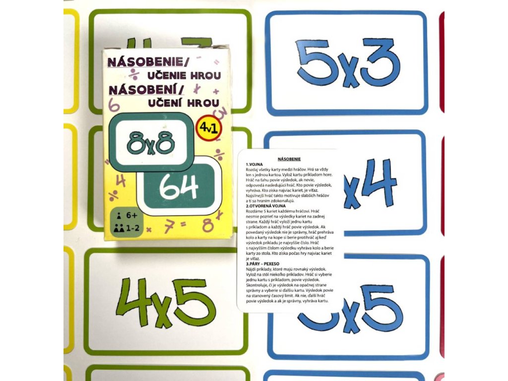 Přesná pravidla všech her jsou přehledně vysvětlena v přiloženém lístku přímo v balení. Hry jsou navrženy tak, aby děti nenápadně procvičovaly násobení, zlepšovaly koncentraci a zároveň se skvěle bavily. Karty jsou vhodné pro děti od 6 let, hrát mohou 1 až 2 hráči, takže jsou ideální pro individuální učení i souboj rodič vs. dítě. Perfektní volba pro všechny, kteří chtějí změnit učení matematiky na zábavnou hru.