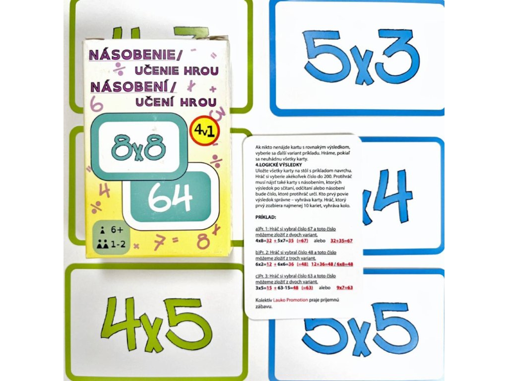 ARGUS Hrací edukační karty 4 v 1 – Násobilka. Hravé učení násobilky pro rozvoj logického myšlení a paměti. Lze si zahrát také pexeso nebo válku.