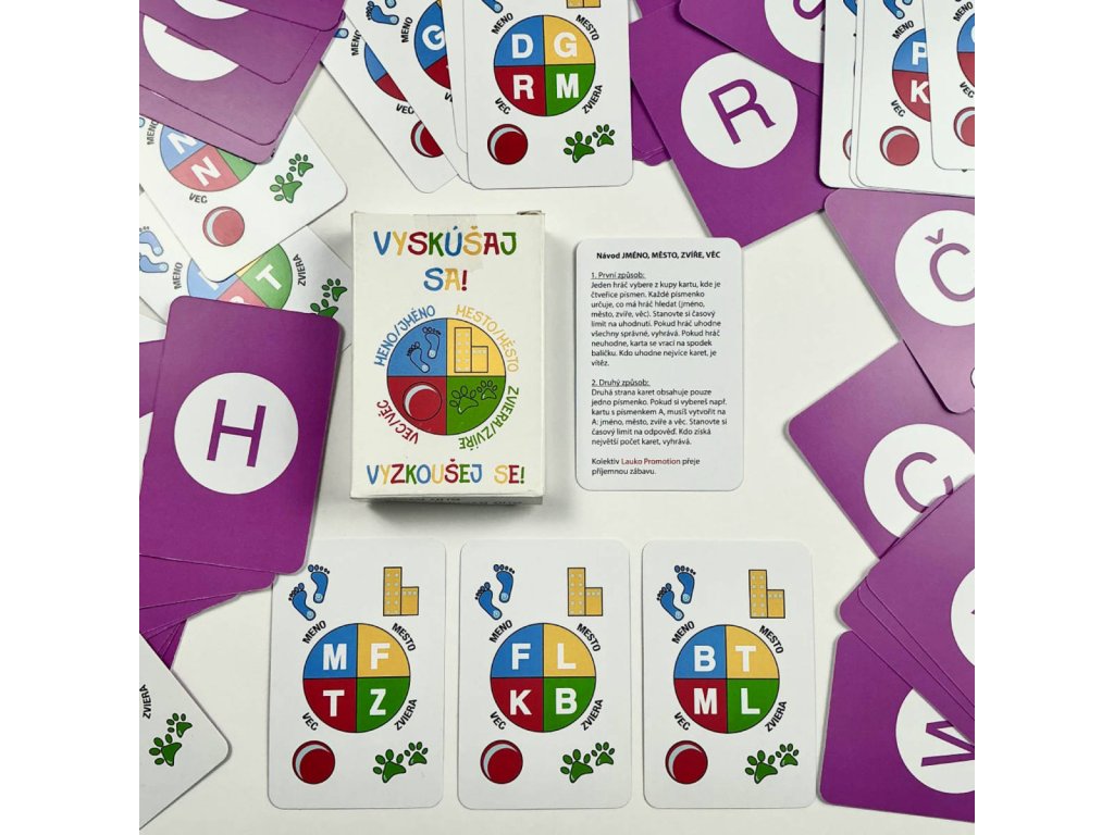 Vraťte se do dětských let a objevte tuto legendární slovní hru v novém, ještě zábavnějším kartovém zpracování. Kartová hra Jméno, město, zvíře, věc spojuje generace – rodiče si zavzpomínají a děti se hravou formou učí nová slova. Úkolem hráčů je co nejrychleji vymyslet správné slovo do zadané kategorie podle pokynů na kartě. Rychlost, pohotovost a dobrá slovní zásoba rozhodují o vítězi. Hra je dynamická, zábavná a nikdy není stejná.