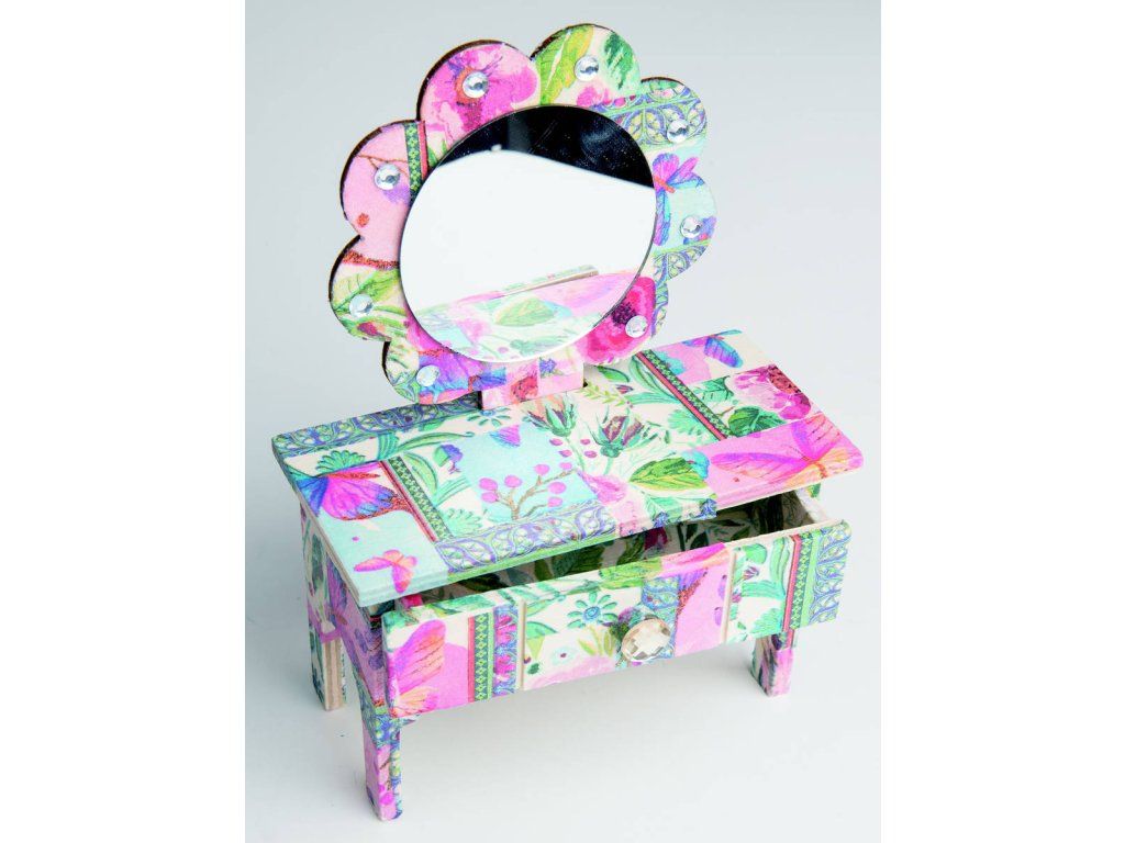 Vyrobte si vlastní originální šperkovnici. Se sestavou ARTO si užijete kreativní chvilky a vytvoříte si jedinečný úložný prostor pro své poklady. Tato sada obsahuje všechny potřebné díly pro sestavení a ozdobení dřevěné šperkovnice ve tvaru toaletního stolku pomocí oblíbené ubrouskové metody. Sada ARTO je skvělým dárkem pro všechny, kteří rádi tvoří a chtějí si vytvořit něco vlastního a originálního. Je ideální pro děti i dospělé.