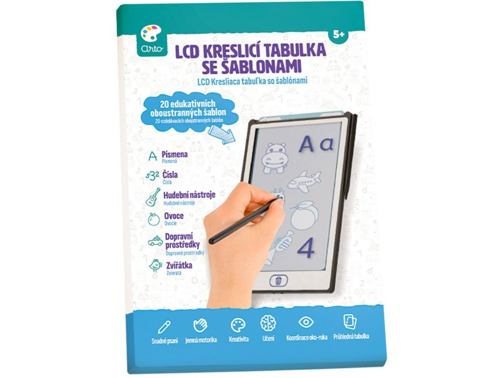 ARTO LCD Kreslicí tabulka se šablonami je průhledná LCD tabulka, která dětem umožňuje kreslit, psát vzkazy nebo hrát hry bez nutnosti použití papíru. Součástí balení jsou i šablony, které se vkládají pod průhlednou plochu a pomáhají dětem s nácvikem psaní, uvolňováním ruky, postupným kreslením zvířátek nebo si s nimi mohou zahrát piškvorky, lodě či hádání slov.