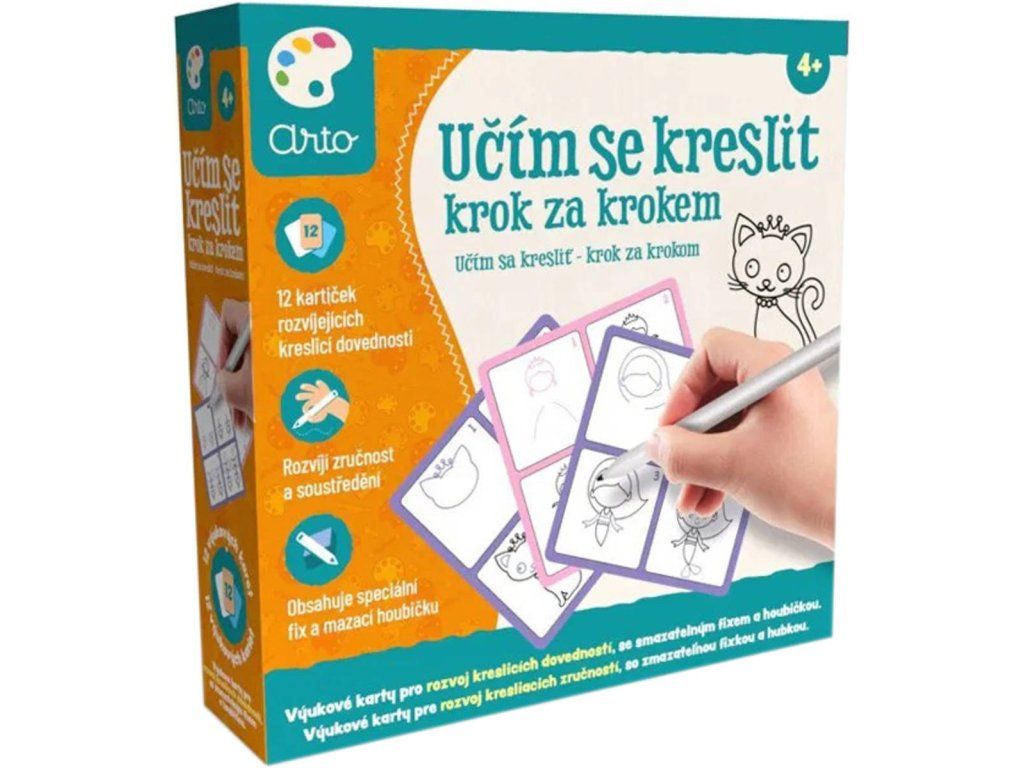 ARTO Edukativní sada Učím se kreslit Krok za krokem. Součástí výukové kartičky, mazatelný fix a houbička.