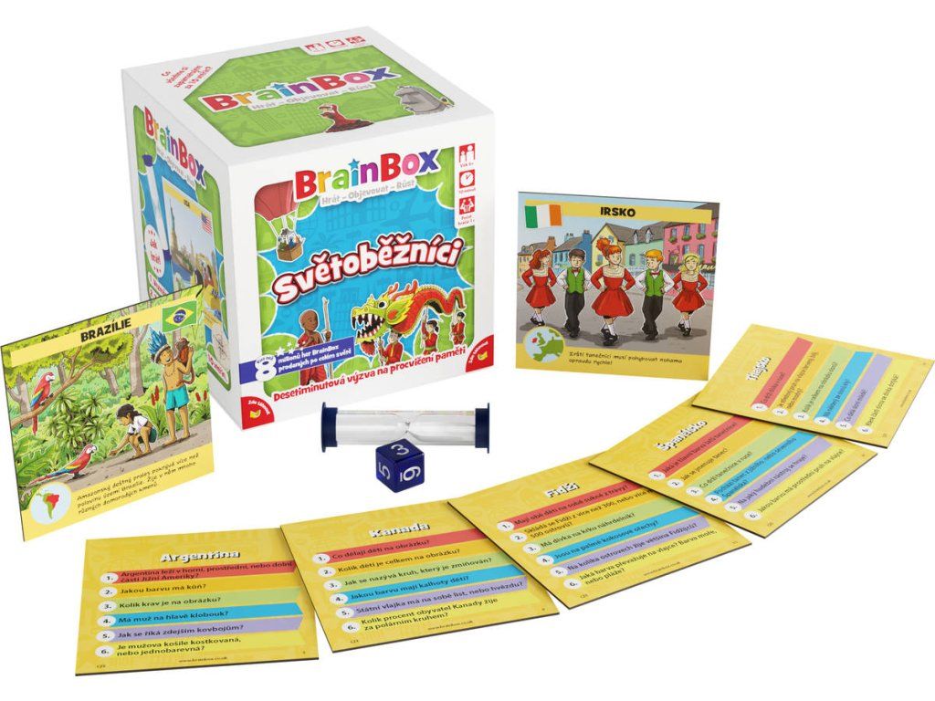 BrainBox je zábavná paměťová a postřehová karetní hra, která otestuje váš smysl pro detail. Odpovědi na všechny otázky máte přímo před sebou na kartě. Bude vám stačit 10 vteřin na to, abyste si všechno zapamatovali? Tato edice hry, věnovaná zemím z celé planety, vám představí jejich ikonická místa, zvyky a zajímavé informace. Věděli jste, že velbloudí dostihy jsou oblíbené v celém arabském světě a že někteří velbloudi se dokonce účastní i soutěží krásy? A že japonský tradiční oděv kimono doslova znamená "věc na nošení"? Hra BrainBox Světoběžníci obsahuje 55 hracích karet s ručně malovanými ilustracemi, které vám doslova oživí každý pohled na danou zemi. Hra pomáhá dětem dozvědět se více o úžasných zemích naší planety a jejich obyvatelích, a přitom rozvíjí kognitivní dovednosti, jako je postřeh a vybavování si vzpomínek, které tvoří základ pro celoživotní vzdělávání.