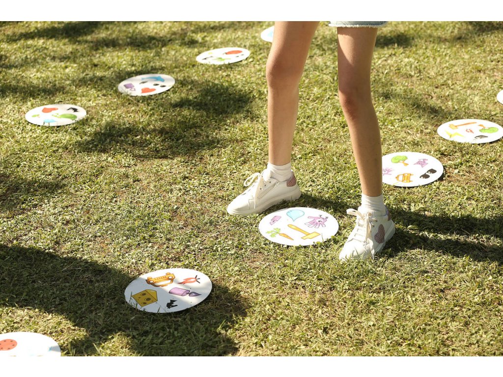 Společenská postřehová hra Dobble Giant. Najděte stejné symboly na cestě k vítězství! Větší kulaté karty, 4 varianty hry.