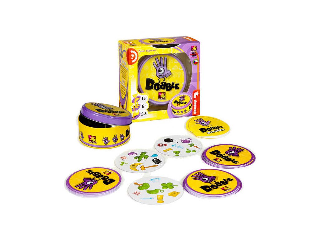 Nová rodinná hra zaměřená na rychlost, postřeh, reflexy! 5 her v 1 Rychlost, postřeh, reflexy! Dobble to je 50 různých symbolů, 55 karet, 8 symbolů na kartě a každé dvě karty spolu mají společný pouze jeden ! Hra je kompletně v češtině i slovenštině a nabízí zcela unikátní zábavu. Hráči zde hledají dva stejné symboly na kartách při různých verzích hry (v pravidlech je popsáno celkem 5 her). Super jsou kulaté karty i jednoduchá pravidla vysvětlená doslova za pár sekund. Cílová skupina jsou děti i rodiče - všichni, kdo se chtějí pořádně bavit a nemají čas pročítat dlouhá pravidla. Plechová krabička zaručuje bezpečí karet a je i další přidanou hodnotou. Vyzkoušejte i Vy hru Dobble a budete nadšení, jak i tak jednoduchá hra může být zábavná!