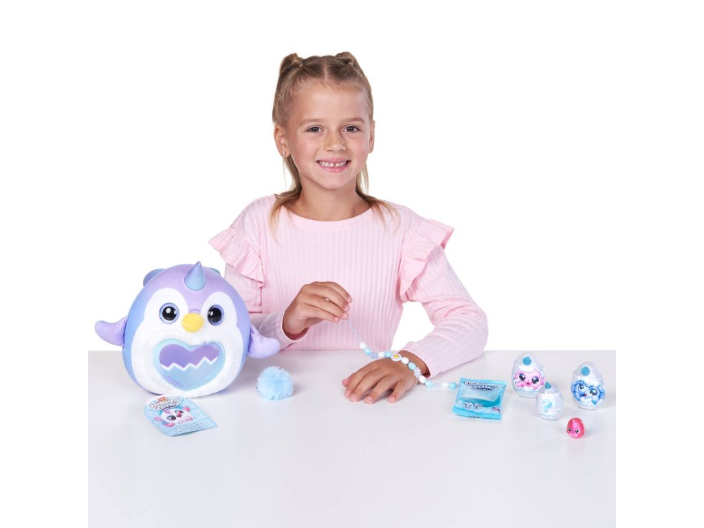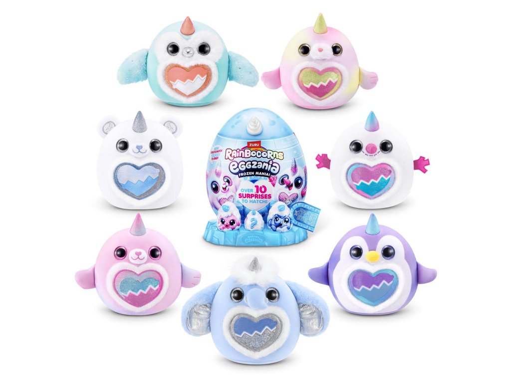 Rainbocorns Eggzania Frozen Mania vás zavede do ledového kouzelného světa Eggzania! Vylíhněte mrazivé vajíčko a objevte více než 10 zasněžených překvapení - každé kouzelnější než to předchozí. Možná narazíte i na vzácného sněhuláka, který se ukrývá uvnitř!