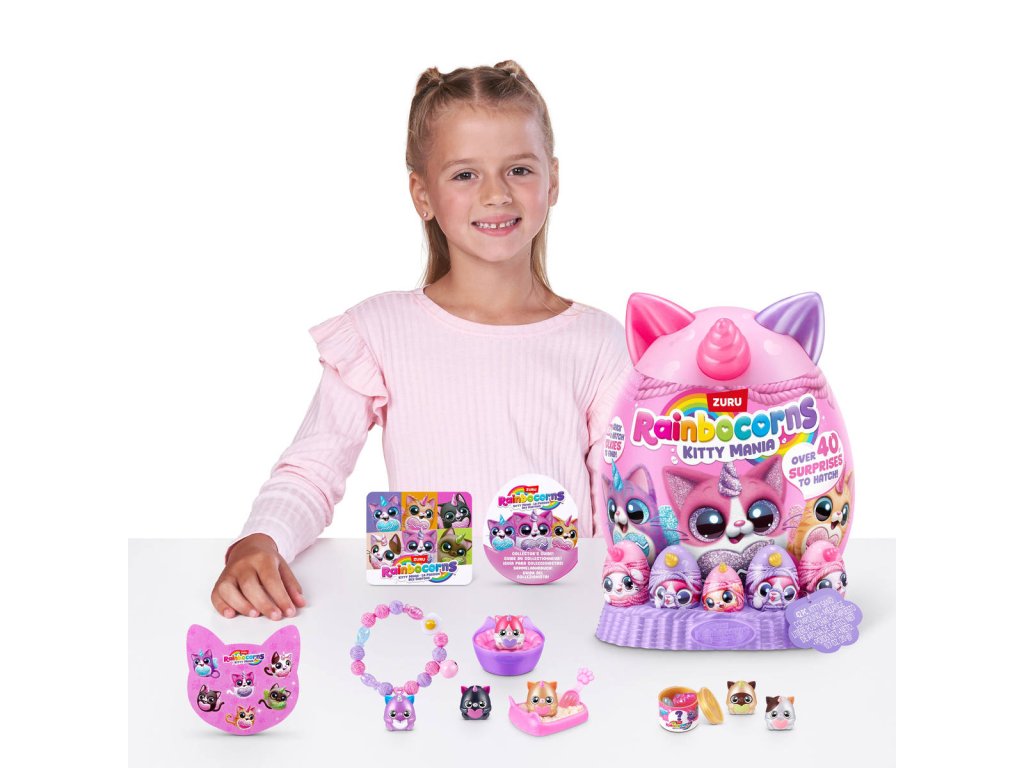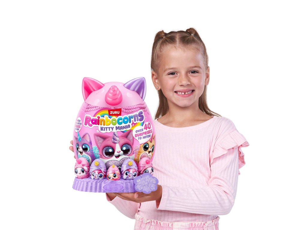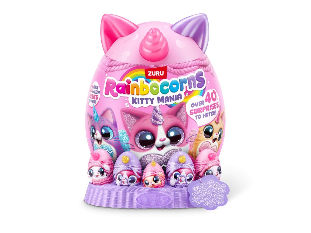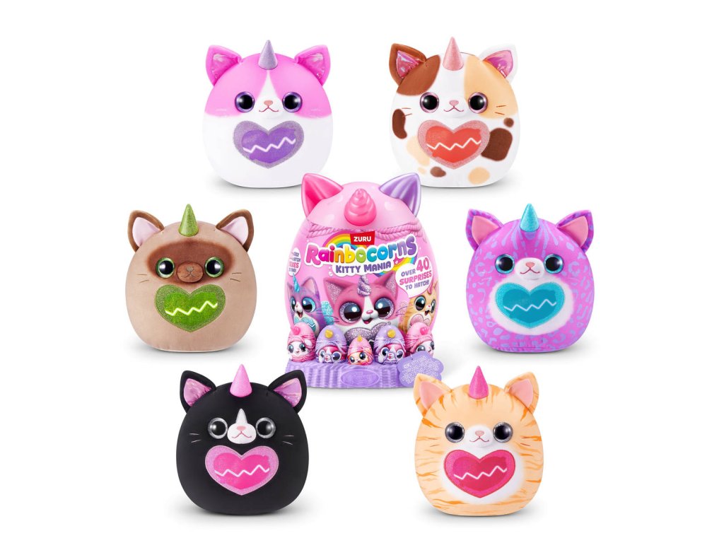 Rainbocorns Kitty Mania přináší ještě více kočiček a ještě více překvapení! V kouzelném světě Rainboville na vás čekají noví chlupatí kamarádi. Rozbalte vajíčko a objevte toho nejroztomilejšího, nejměkčího a nejpřítulnějšího plyšového mazlíčka.