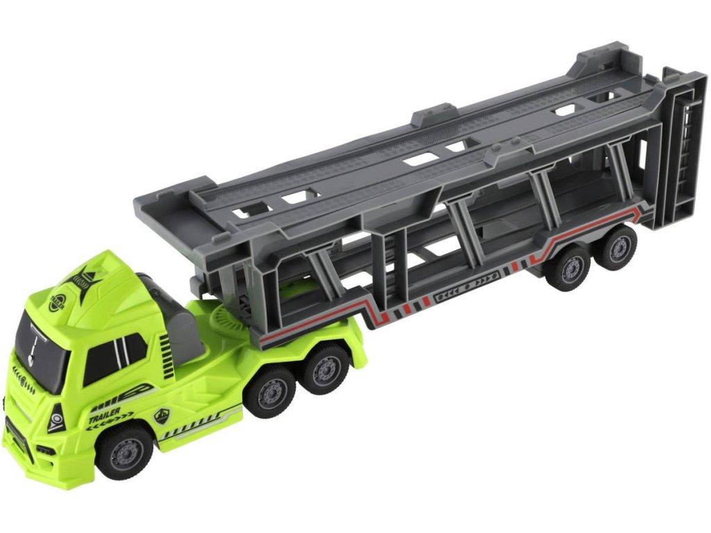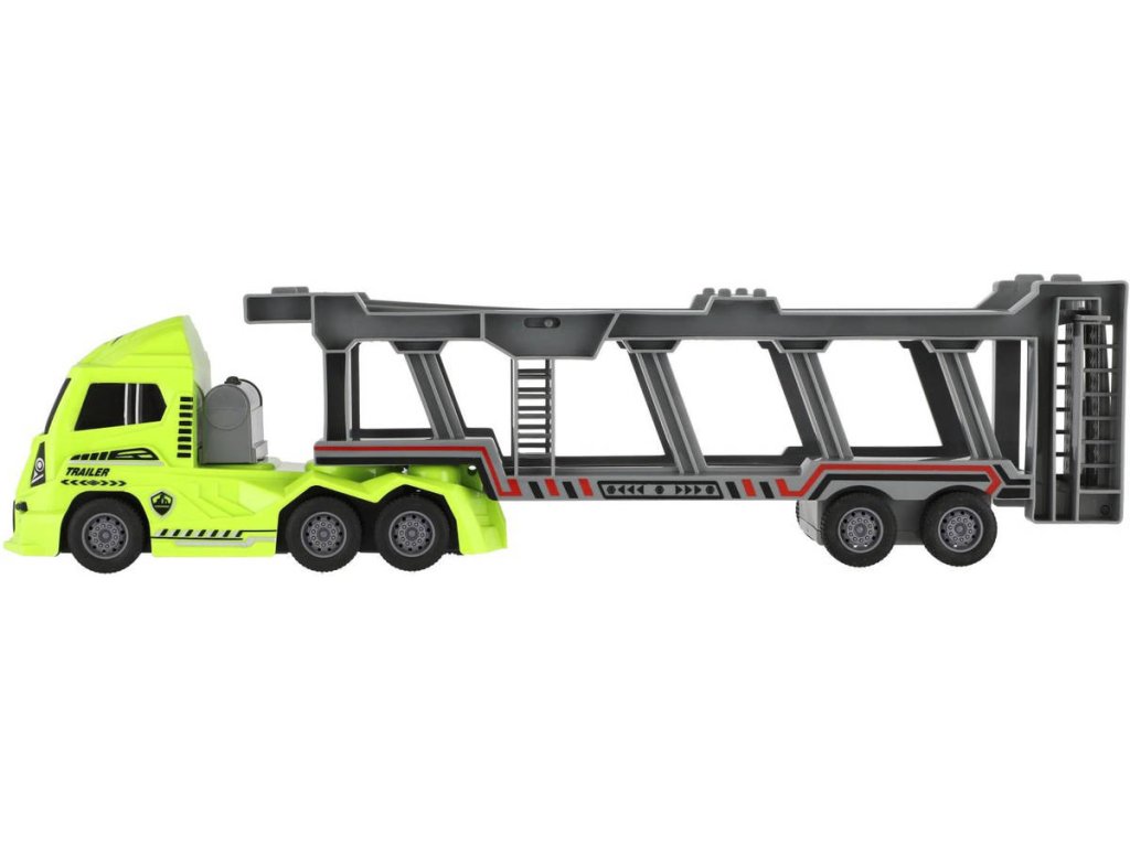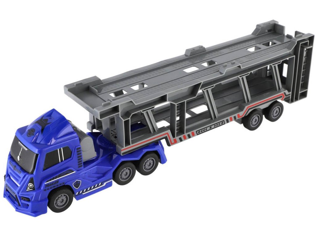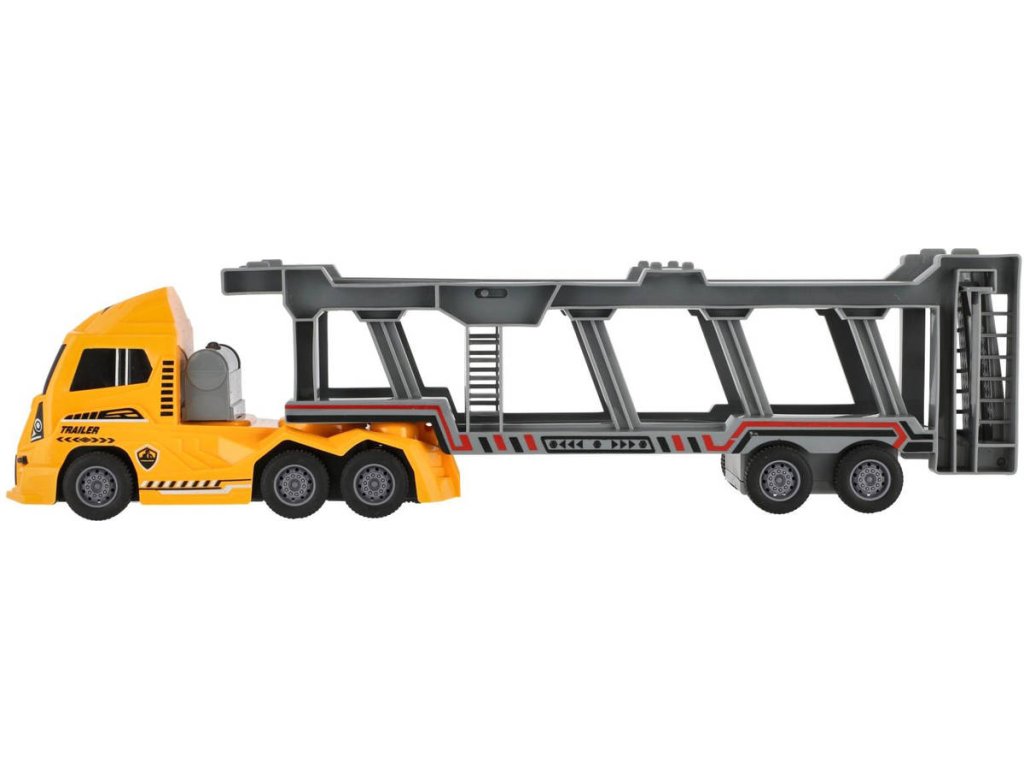 Plastový kamion o velikosti 45cm. přepravník aut, tahač na setrvačník, ve čtyřech barevných variantách.