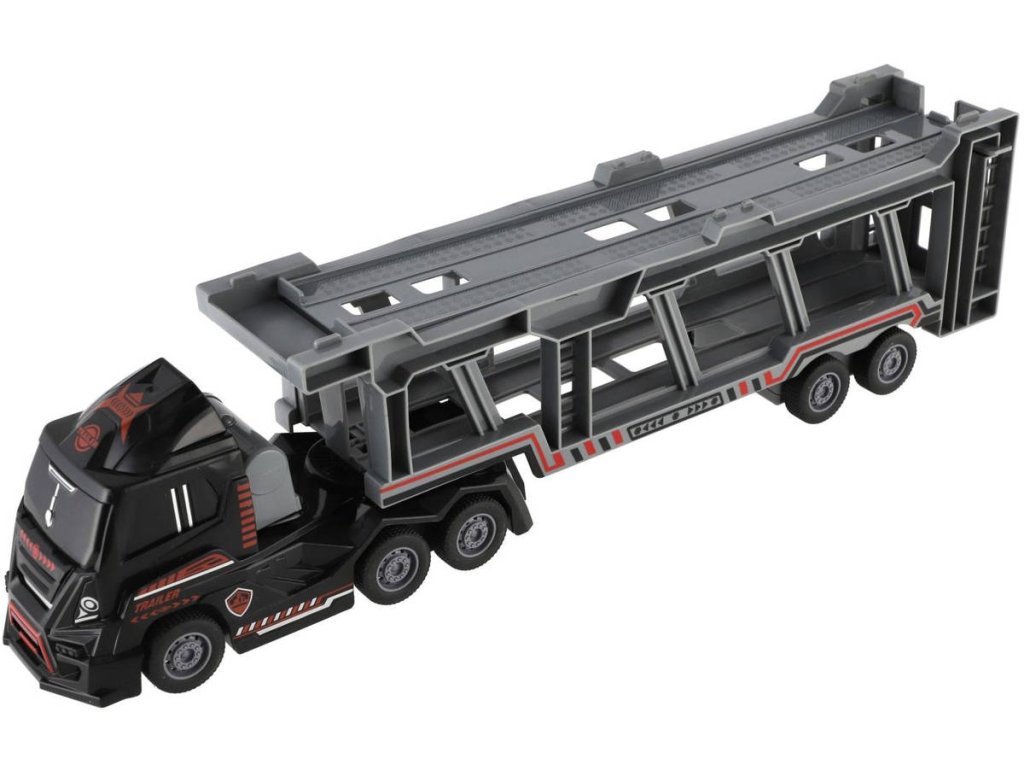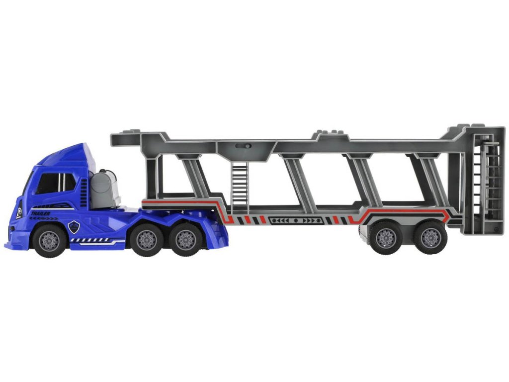 Vydej se na policejní zásah s parádním kamionem přepravníkem! Tento velký plastový tahač s realistickým designem a pohonem na setrvačník může přepravovat hned několik autíček, která lze snadno vyjímat a znovu nakládat díky funkční rampě. Dvoupatrový návěs je výklopný a zajišťuje skvělou hratelnost i prostor pro uložení vozidel.