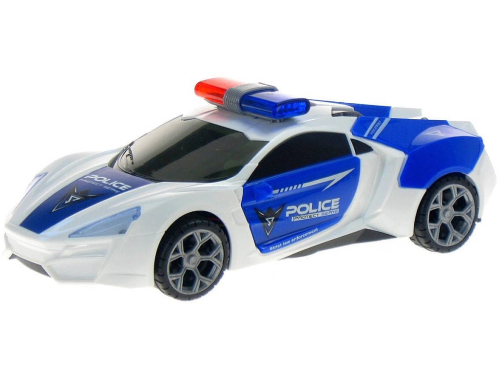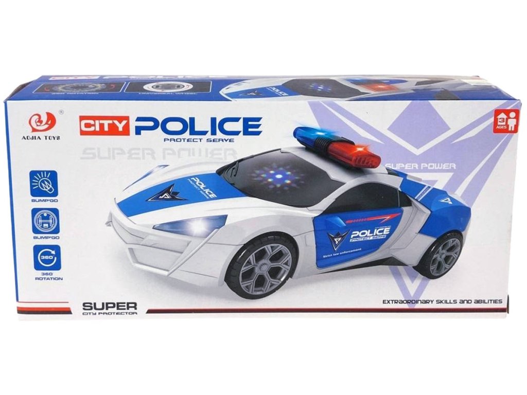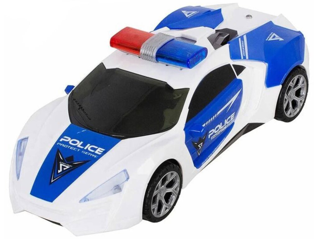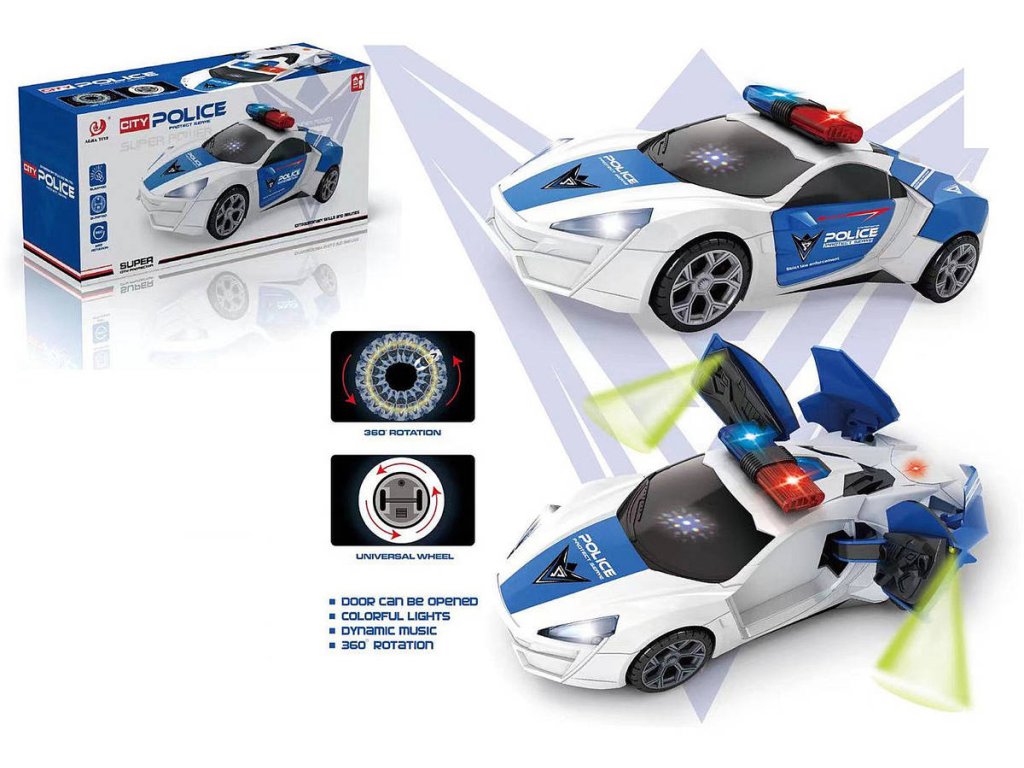 Auto policejní 360 rotace narážecí policie na baterie Světlo Zvuk