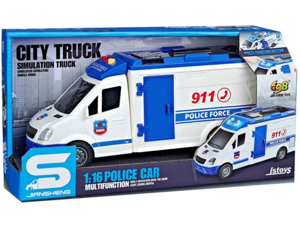 Auto policejní dodávka na setrvačník 1:16 na baterie Světlo Zvuk