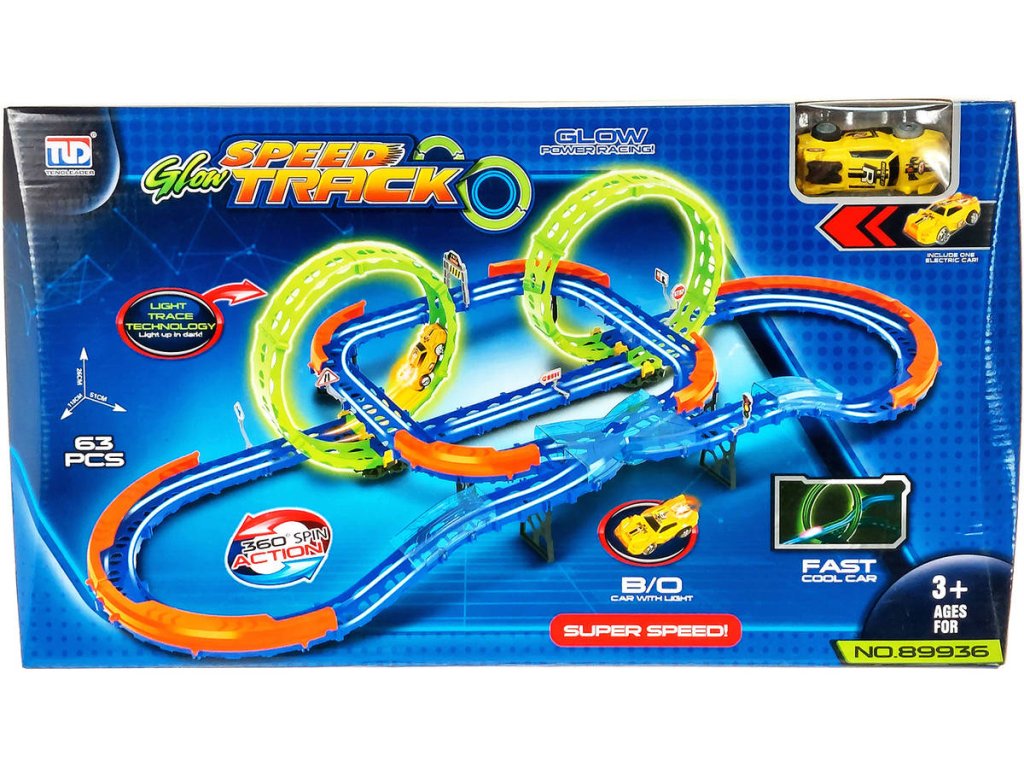 Zábava, která svítí ve tmě: svítící dráha Glow Speed Track nabízí jedinečný zážitek díky schopnosti zářit ve tmě. Děti budou fascinované 360° smyčkami, které při hraní vytvářejí světelnou show.