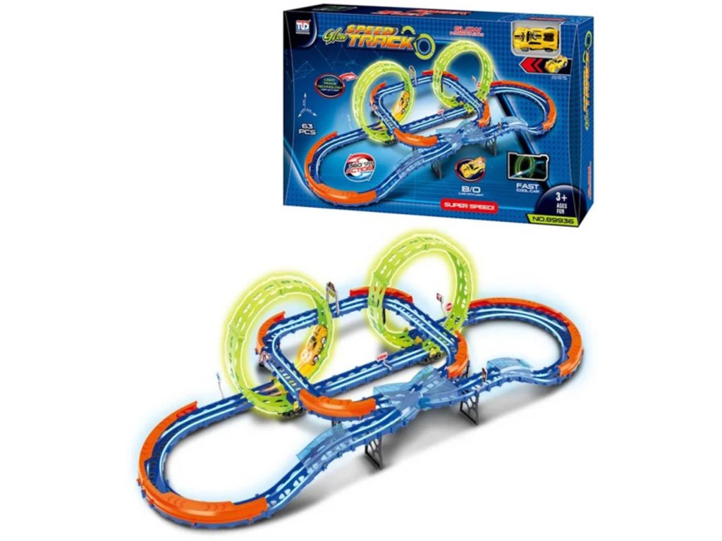 Autodráha svítící ve tmě s křížením a loopingy set s autem na baterie Světlo