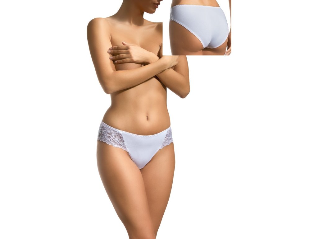 Dámské hladké kalhotky klasického střihu zdobené jemnou krajkou na bocích. Vnitřní část rozkroku kalhotek je podšita bavlněnou látkou. Kalhotky jsou ušity z vysoce kvalitní měkké bavlny, která zajišťuje maximální komfort při nošení. Baleny v krabičce.