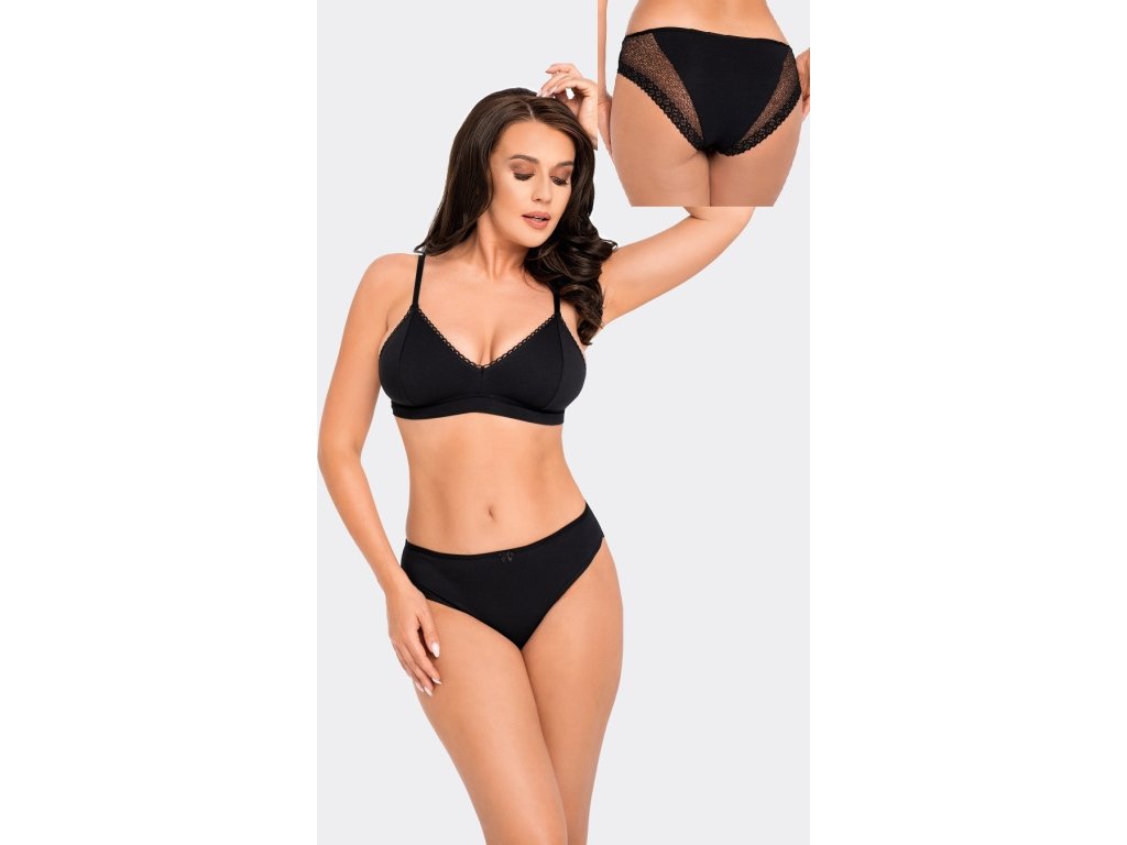 Dámské kalhotky klasického střihu vyrobeny z vysokého podílu bavlny, čímž jsou velmi přijemné na každodenní nošení. V přední části jsou zcela hladké a zadní část je kombinovaná s krásně zdobenou elastickou krajkou po obvodech nohaviček. Krajka je volně ložena a tím se nevzhledně nezařezává do zadečku. Do vnitřního dílu je zapracován bavlněný klínek pro komfortní nošení. Baleny v krabičce.