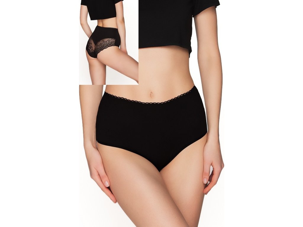 Dámské kalhotky vyššího střihu, vyrobené z vysoce kvalitní a jemné bavlny. Zadní část kalhotek je zdobená krajkou. Baleno v krabičce.