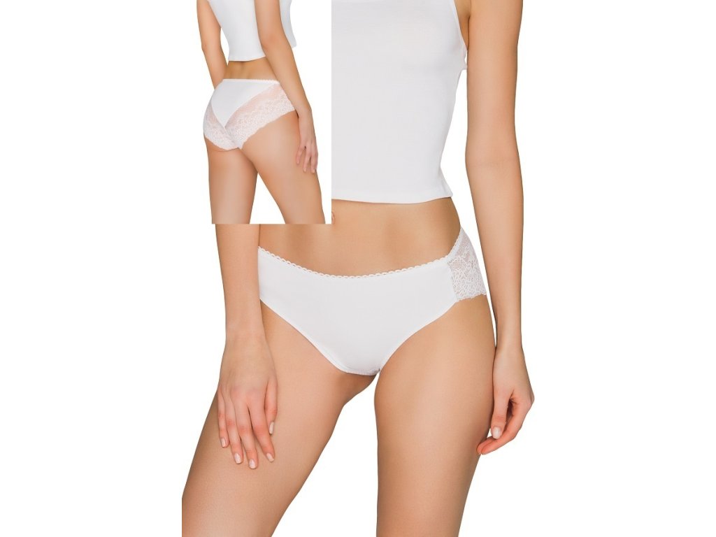 Dámské klasické kalhotky jsou v zadu a na bocích ozdobené krajkou. Vnitřní část rozkroku kalhotek je podšita bavlněnou látkou. Kalhotky jsou ušité z vysoce kvalitní měkké bavlny, která zajišťuje maximální komfort při nošení. Baleno v krabičce.