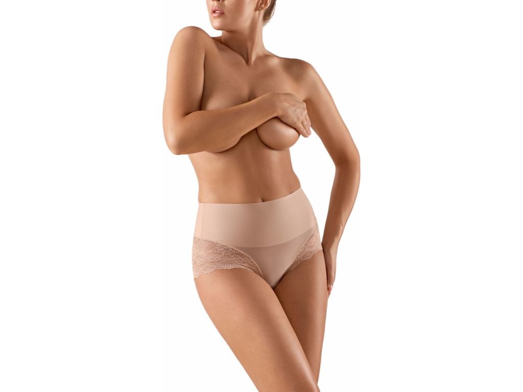 Dámské stahovací kalhotky se zvýšenou linií pasu zdobené květinovou krajkou. Vnitřní část rozkroku kalhotek je podšita bavlněnou látkou. Jsou baleny v originální krabičce.