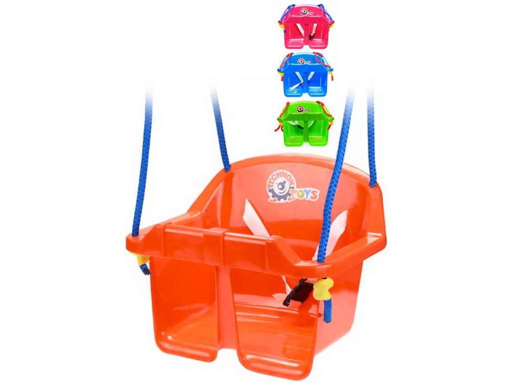Varianta závěsné houpačky z plastu, ve čtyřech barevných variantách, pro nejmenší děti, pro miminko. Vzhledem ke své konstrukci a bezpečnostní pojistce je vhodná pro malé děti.
