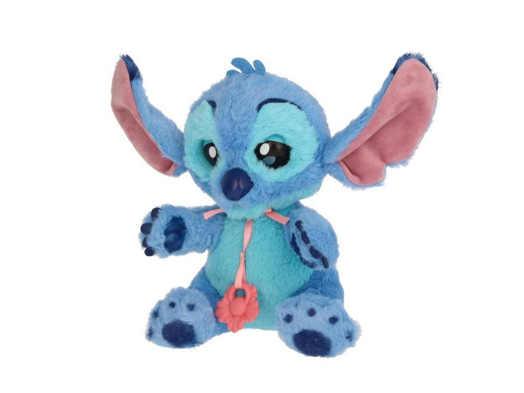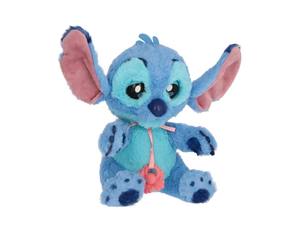 Hračka je vybavena interaktivními funkcemi, které přinášejí zábavu a zároveň uklidňují. Stitch při hraní otevírá oči a vydává autentické zvuky, které připomínají jeho hlas z animovaného filmu. Když mu dáte dudlík, začne vydávat spící zvuky, což podporuje klidné usínání. Plyšové tělíčko je příjemně měkké a ideální pro mazlení i nošení na cesty.
