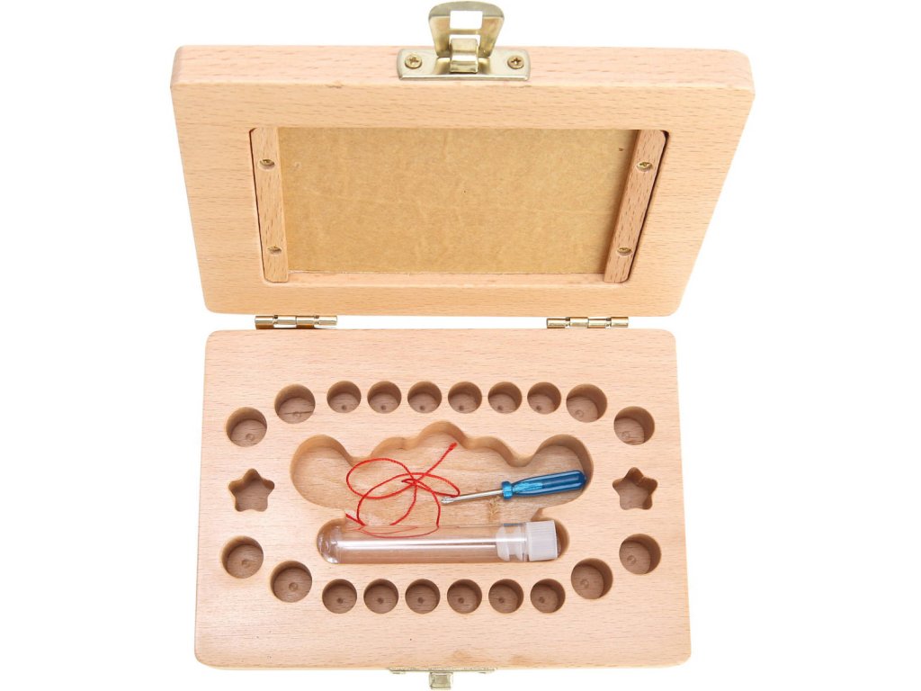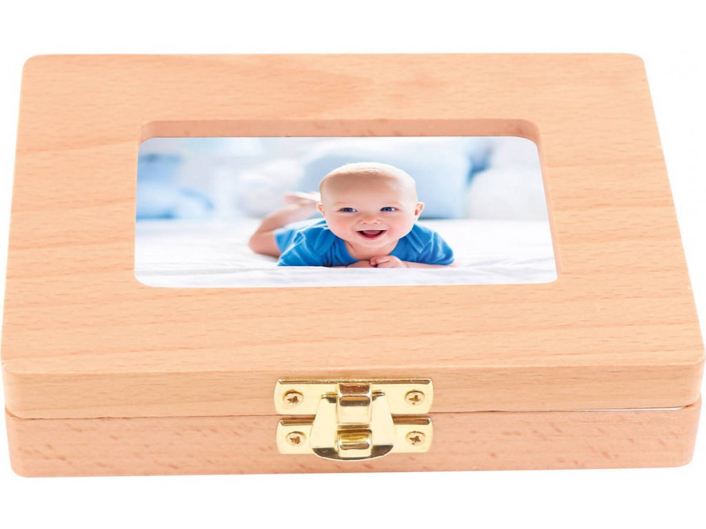 Bino dřevěná krabička na mléčné zoubky vašeho dítěte. Součástí rámeček na fotografii. Pro dlouhodobé skladování mléčných zubů.