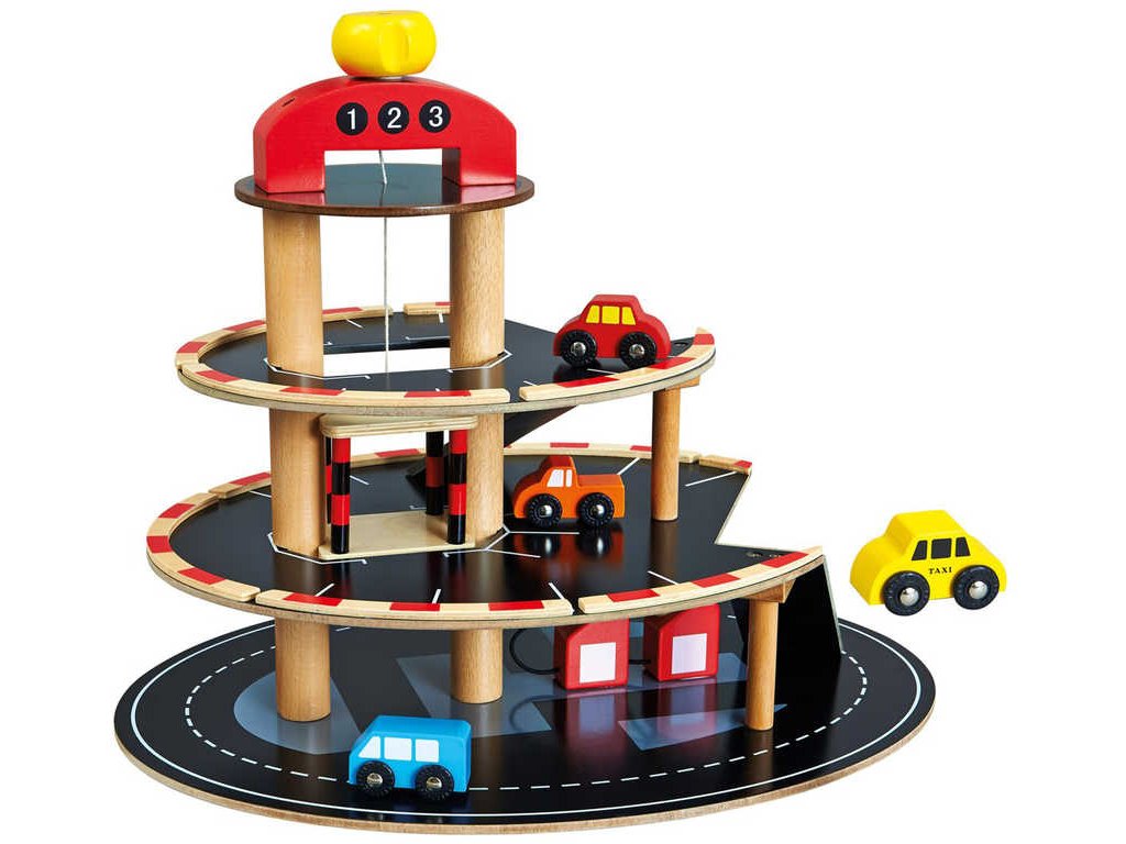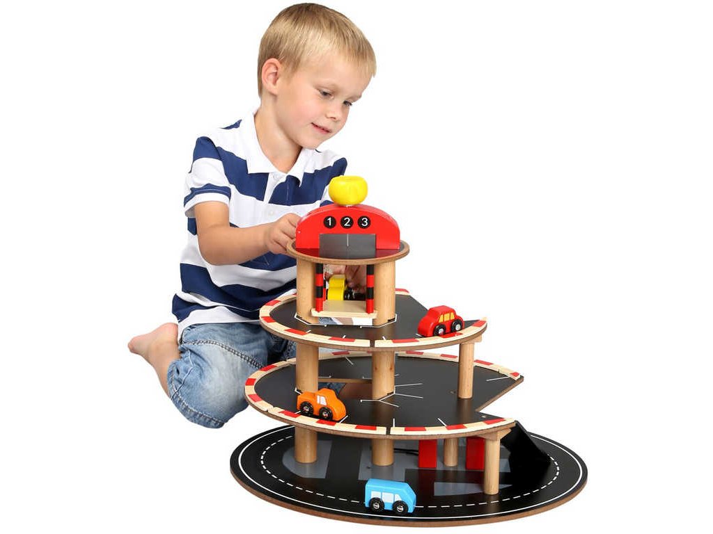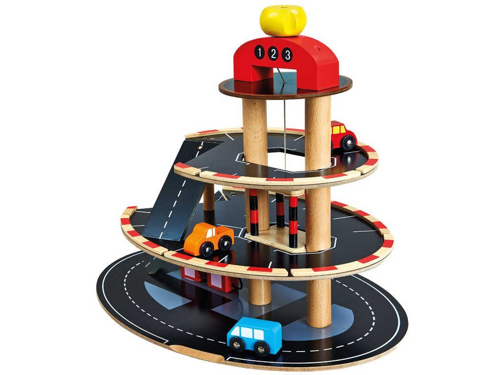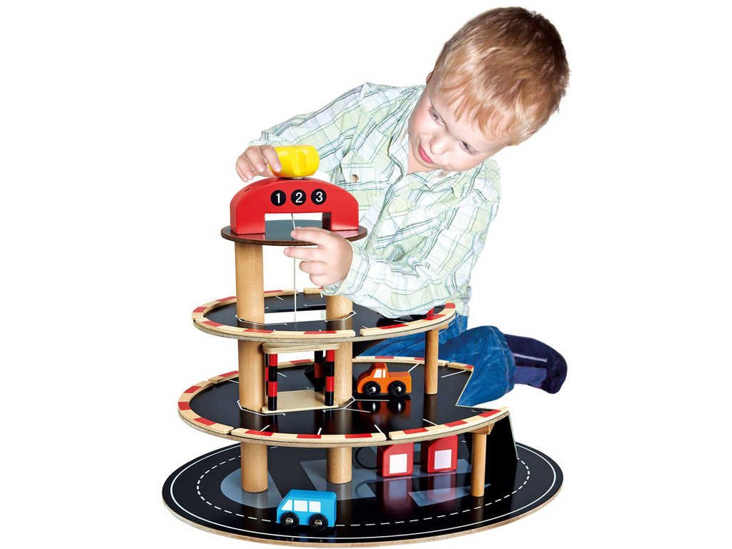 BINO DŘEVO Parkoviště s výtahem set se 4 autíčky *DŘEVĚNÉ HRAČKY*