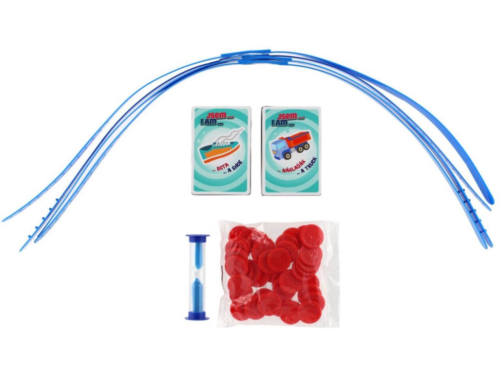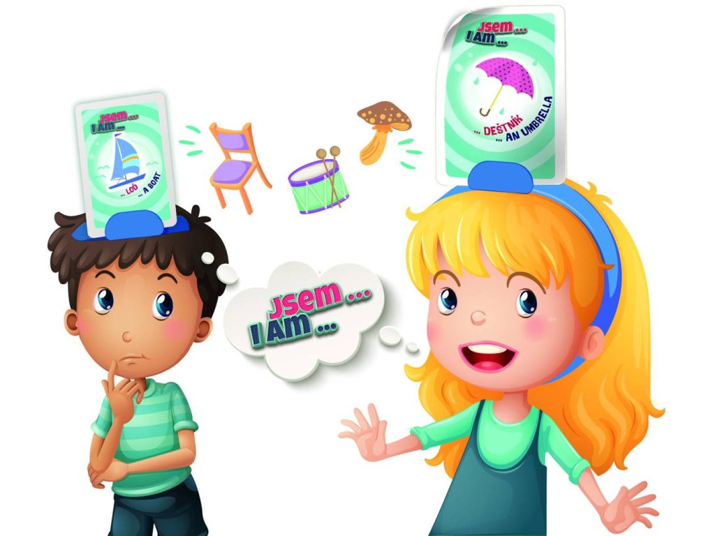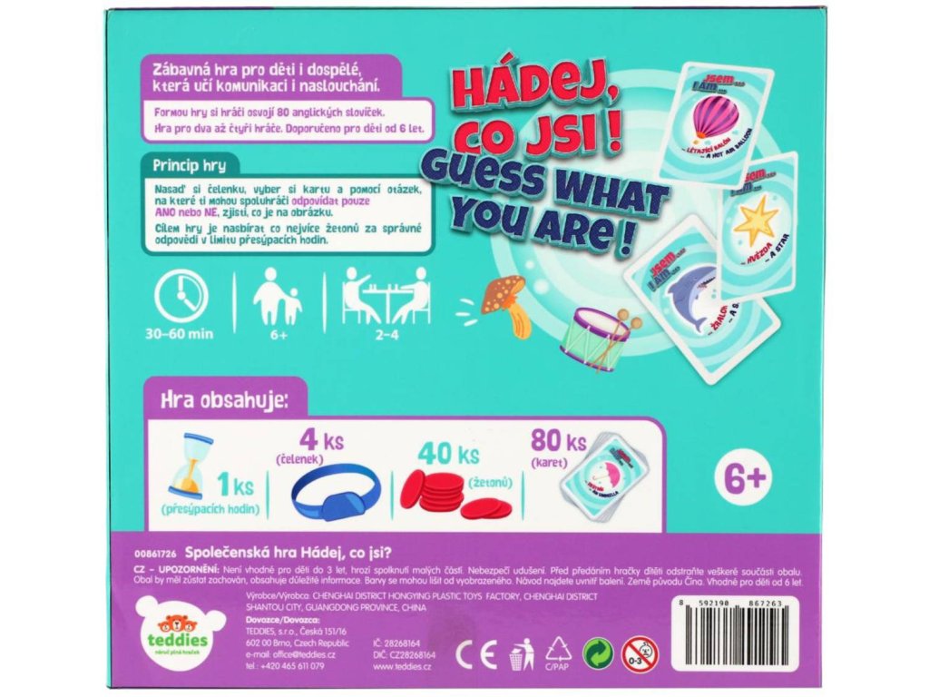 Zábavná společenská hra pro celou rodinu. Hra, která zaručeně rozesměje celou rodinu nebo partu přátel. Veselá hádací hra, při které si hráči nasazují čelenku s kartičkou a snaží se pomocí otázek uhodnout, kým nebo čím jsou. Formou hry si hráči osvojí také 80 anglických slovíček. Nasaď si čelenku, vyber si kartu a pomocí otázek, na které ti mohou spoluhráči odpovídat pouze ANO nebo NE, zjisti, co je na obrázku. Cílem hry je nasbírat co nejvíce žetonů za správné odpovědi v limitu přesýpacích hodin.
