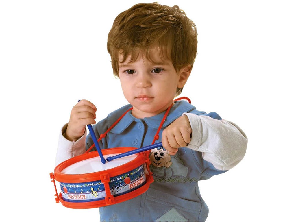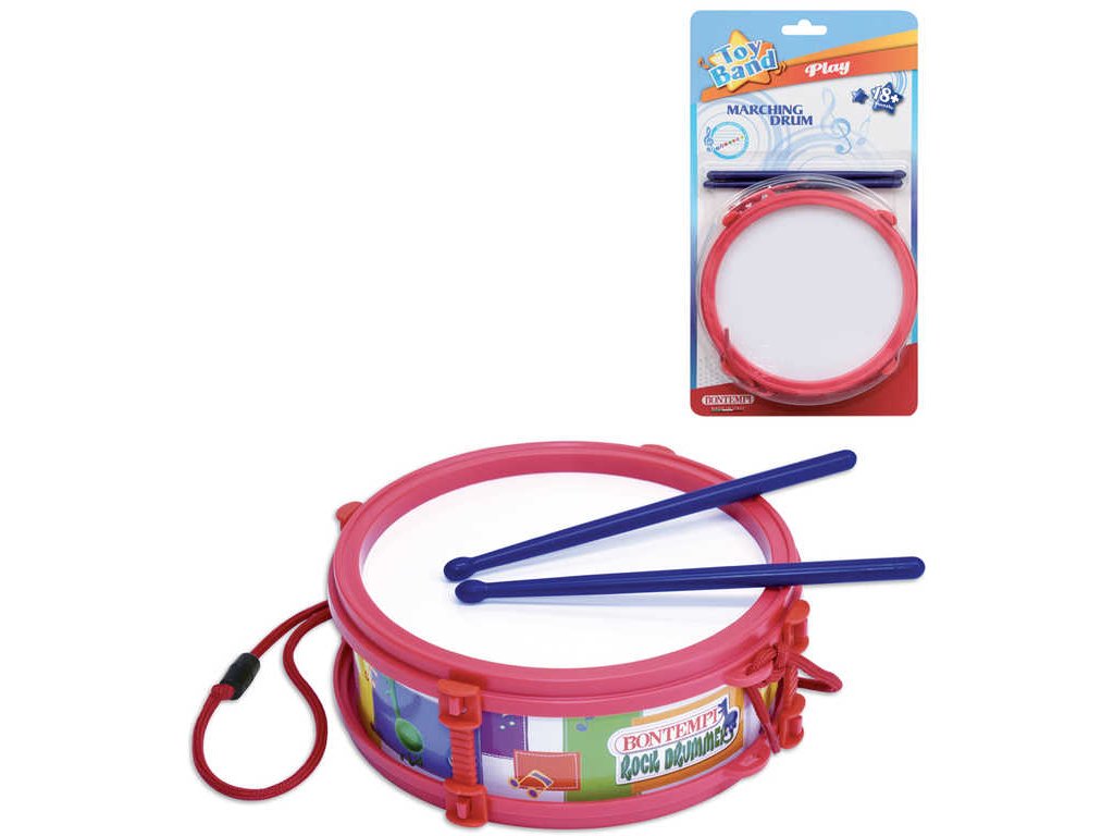 Kvalitní dětský plastový bubínek v setu se dvěma paličkami. Bubínek má šňůrku na zavěšení přes krk, pro možnost bubnovat i za chůze, pokud se vydáte na pochod. Vyrobeno v Itálii. Baleno na kartě.