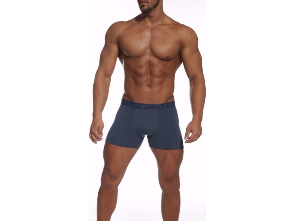 Pánské jednobarevné boxerky s širokou gumou v pase, na které je značka výrobce. Střih bez zadního středového švu. Baleny v dárkové krabičce.