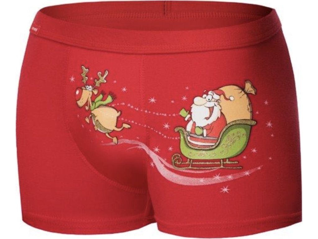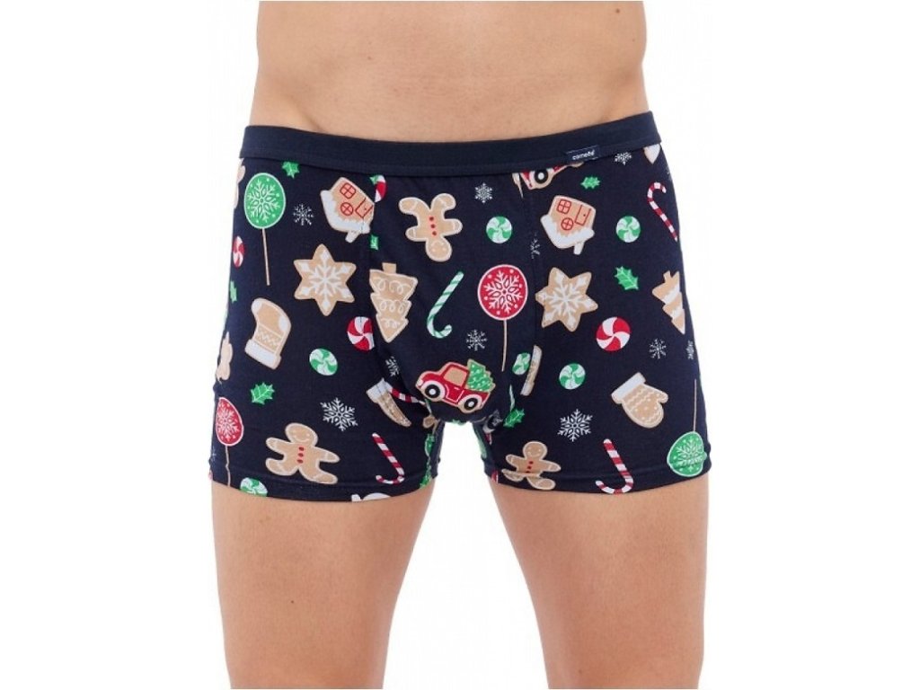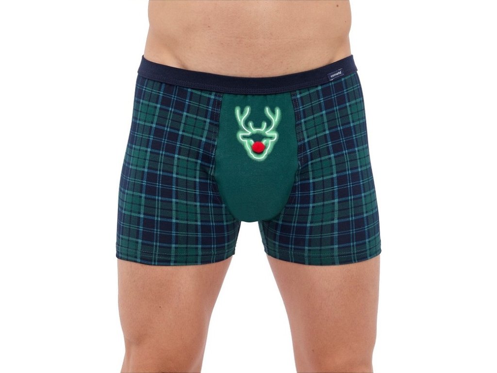 Pánské boxerky s vánočním motivem v pase do obšité gumy s výšivkou loga výrobce. Velice oblíbené pro svůj střih a design. Balené v dárkové krabičce.