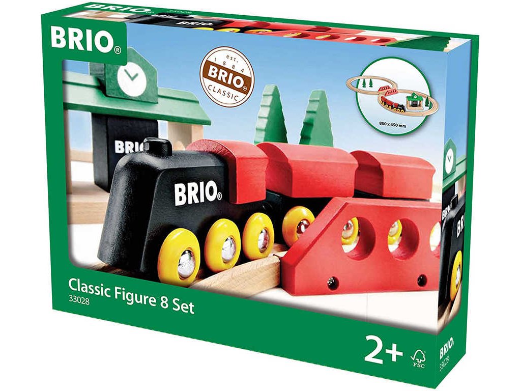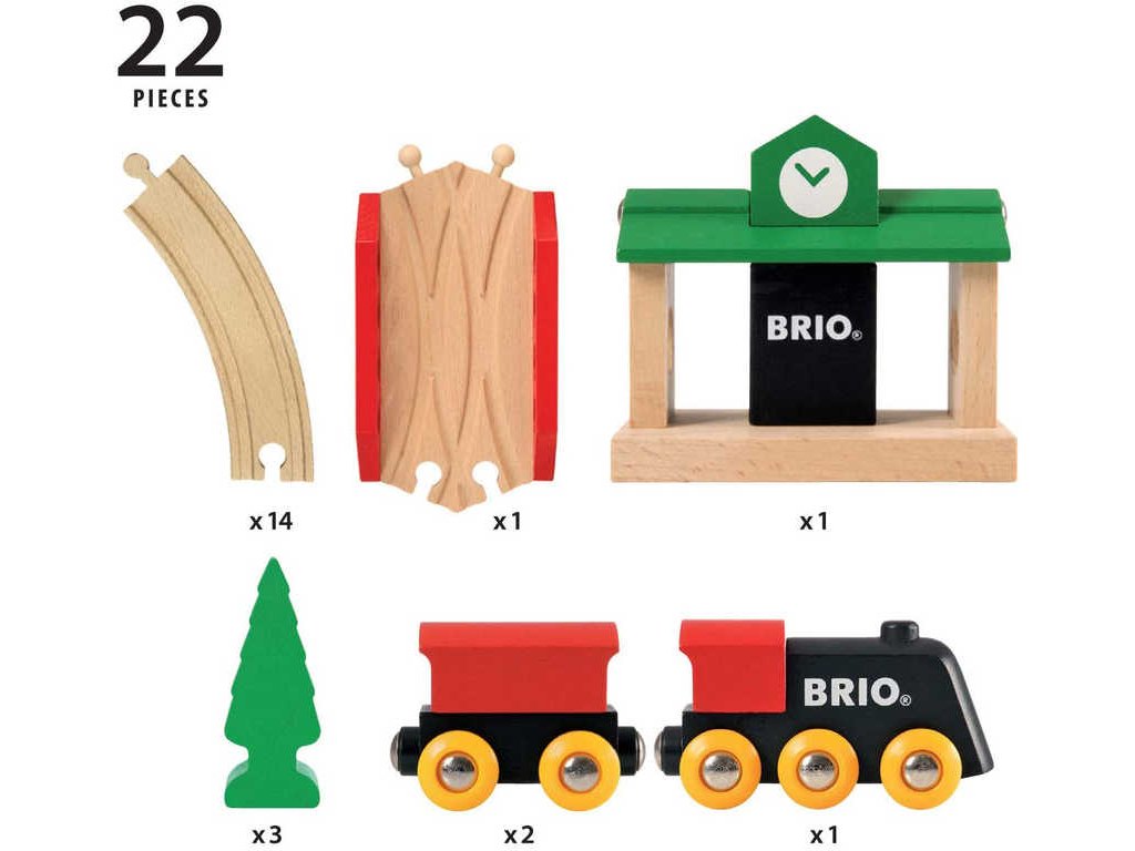 Tato vláčkodráha ve tvaru osmičky obsahuje lokomotivu s vagonky, stanici a stromečky. Díly jsou vyrobené z kvalitního dřeva a mají plastové doplňky. Tato souprava je kompatibilní s ostatními dřevěnými