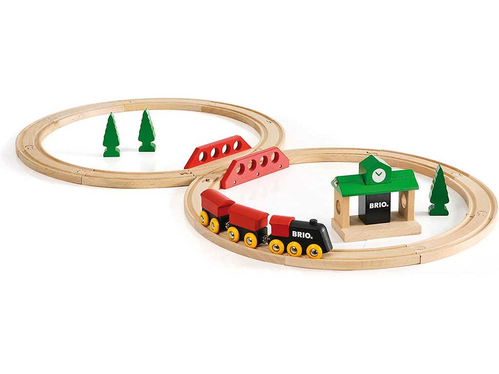 BRIO DŘEVO Baby vláčkodráha osmička Classic set s doplňky 22ks