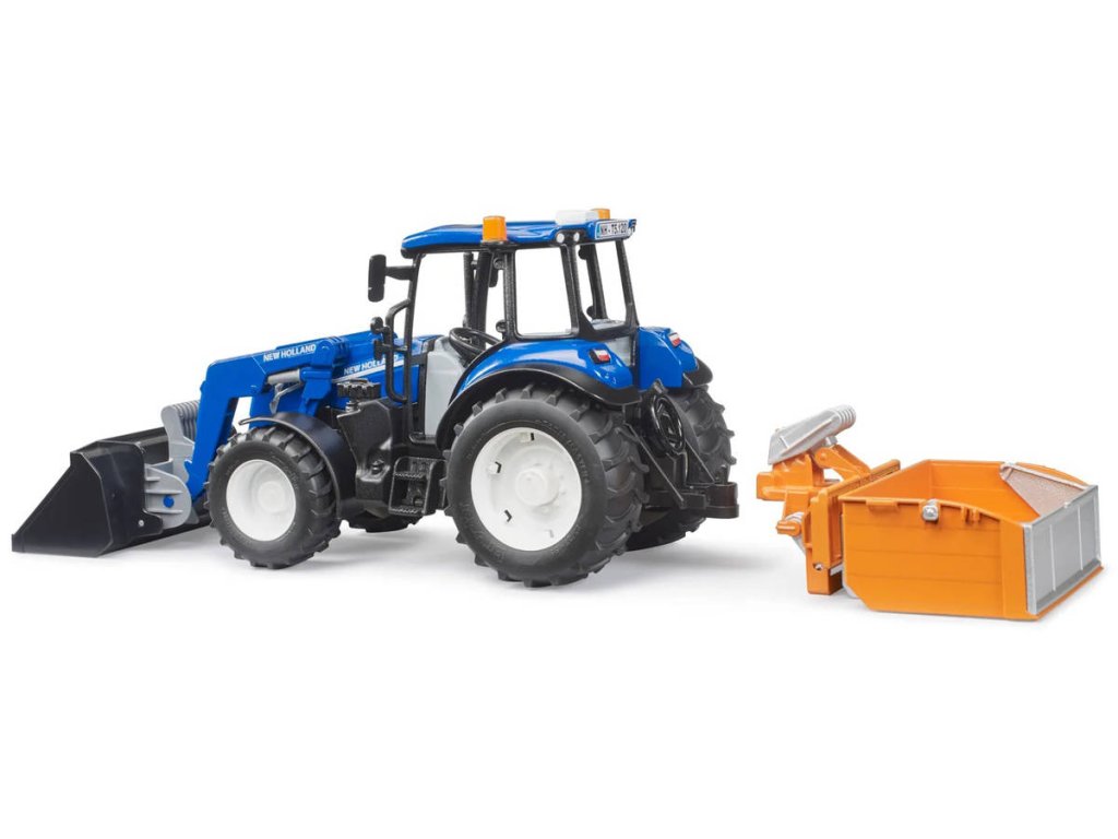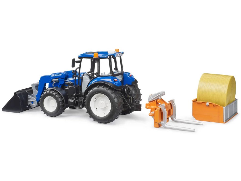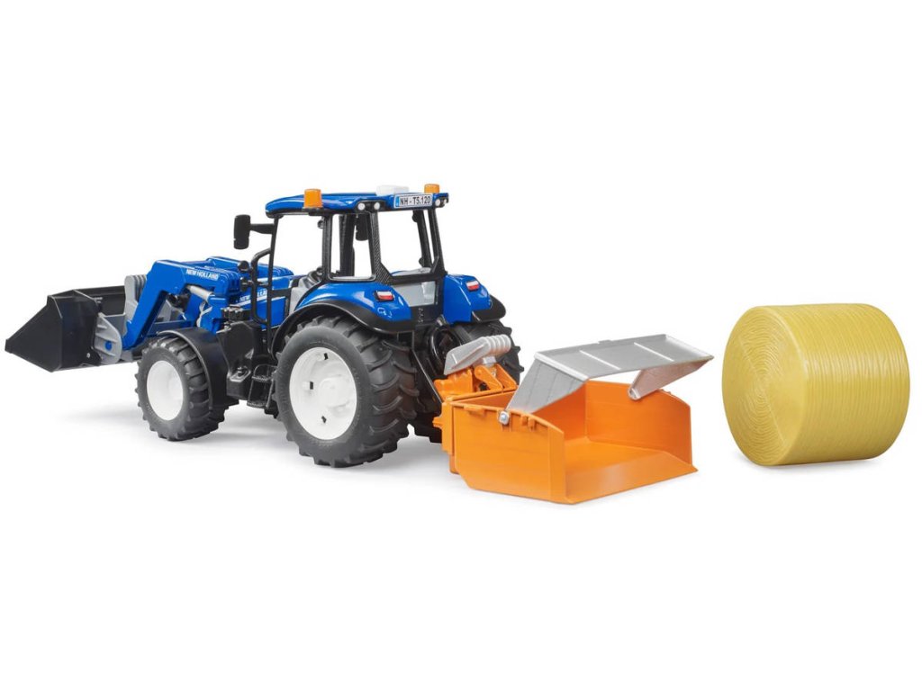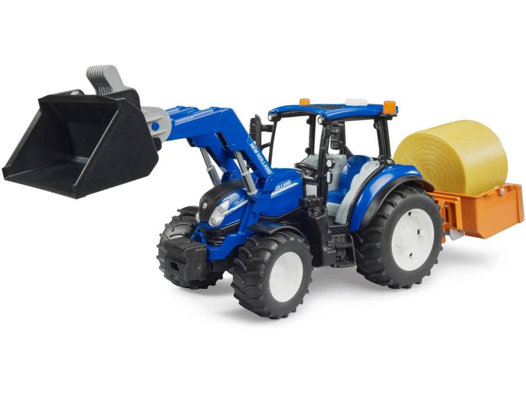 BRUDER 02187 Traktor New Holland T5 + plošina, balík, čelní nakladač