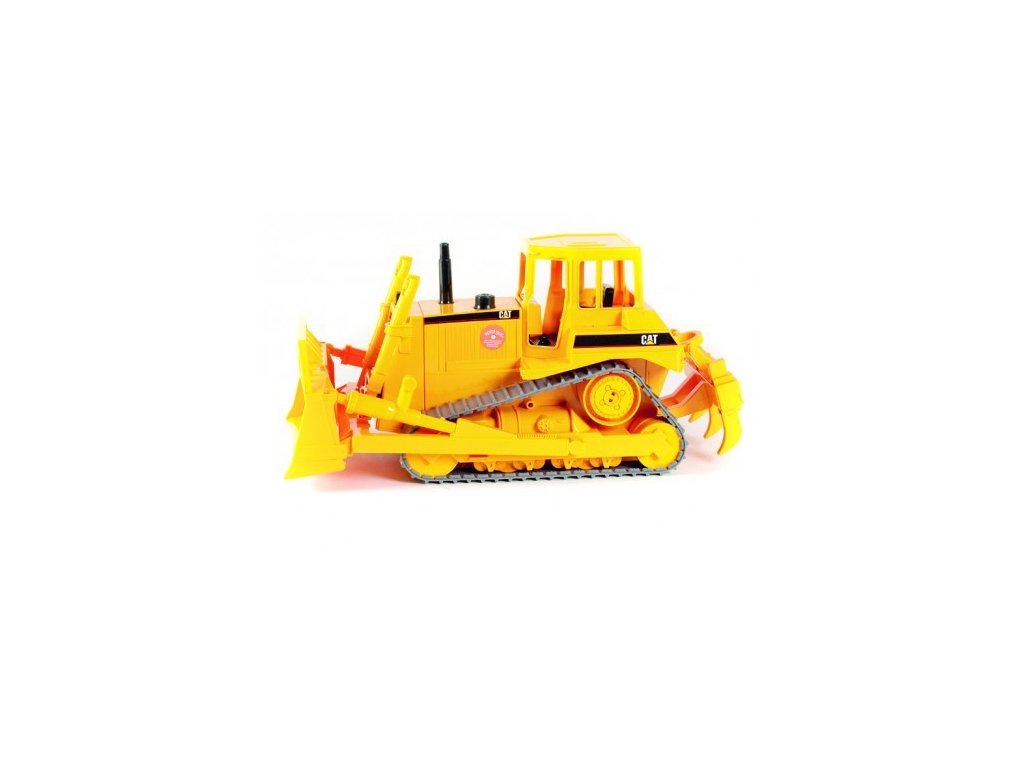 Velice pěkný model buldozeru CATERPILLAR, který je funkční – má pohyblivé pásy, složené z jednotlivých ohybných dílů, masivní přední radlice a zadní kultivátor. Radlice se dá naklápět a posouvat směrem